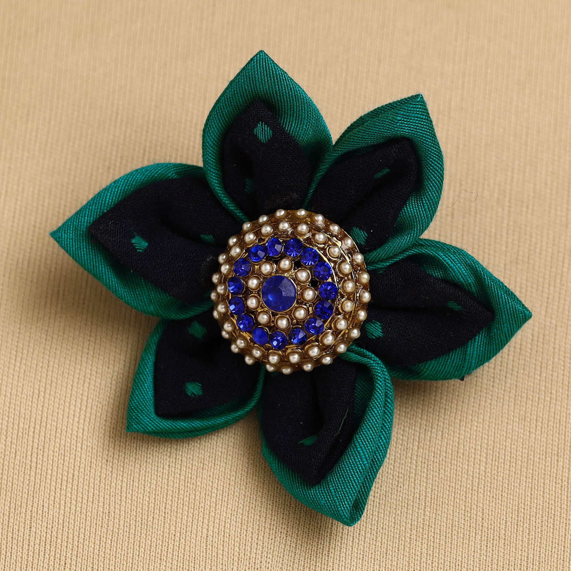 Enhance your hair style with this beautifully handmade green fabric flower hair clip. Featuring intricate detailing and crafted using traditional fabart techniques, this accessory is perfect for adding a unique, artistic touch to any look.