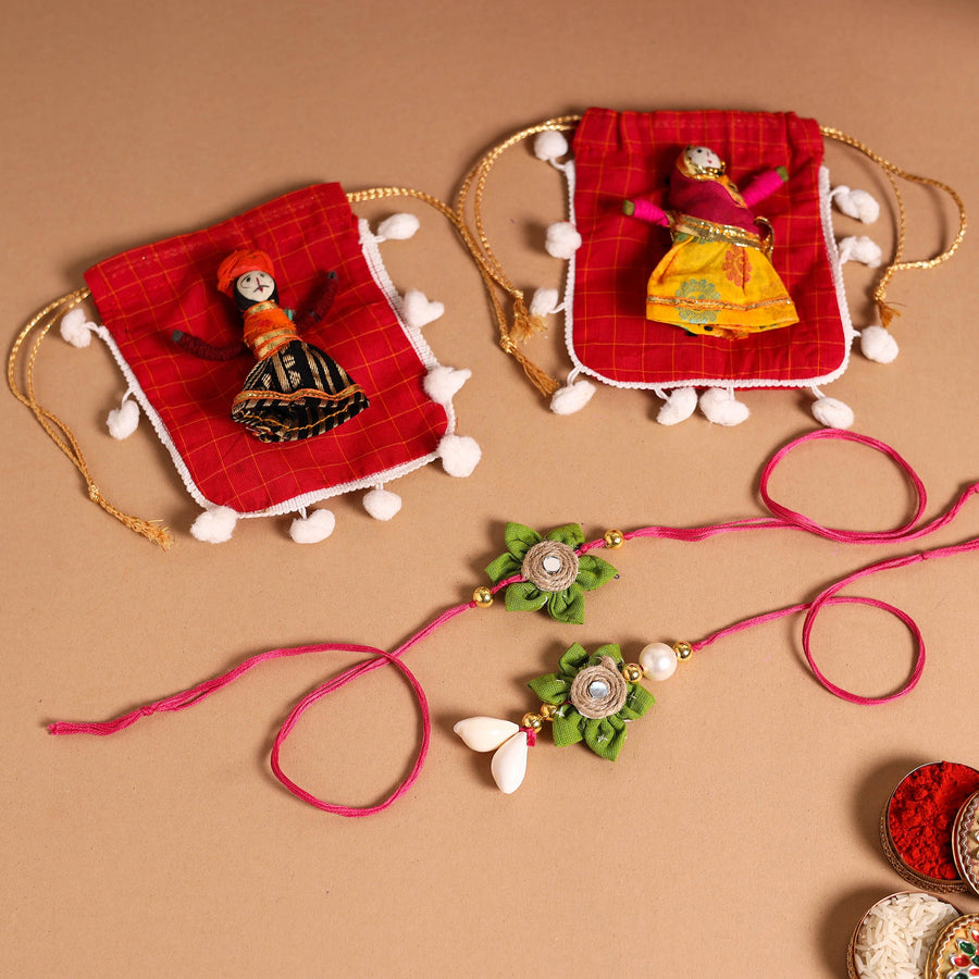 • Buy Handmade Fabric Flower Jute Rakhi & Lumba Set