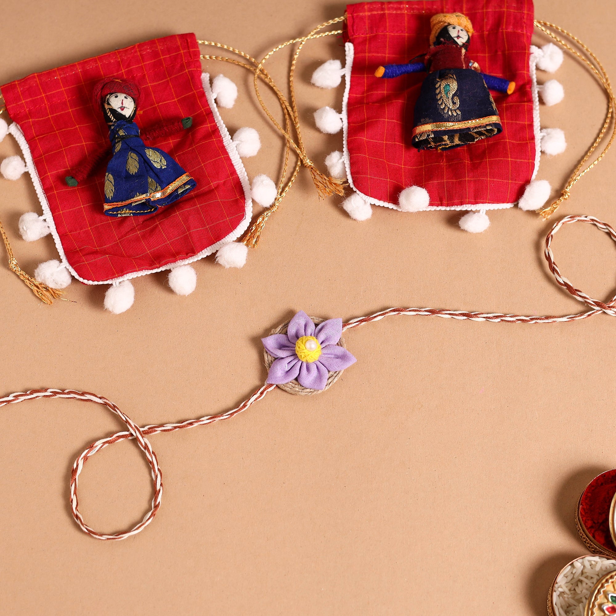 •  Handmade Fabric Flower Jute Rakhi (Set of 2)
