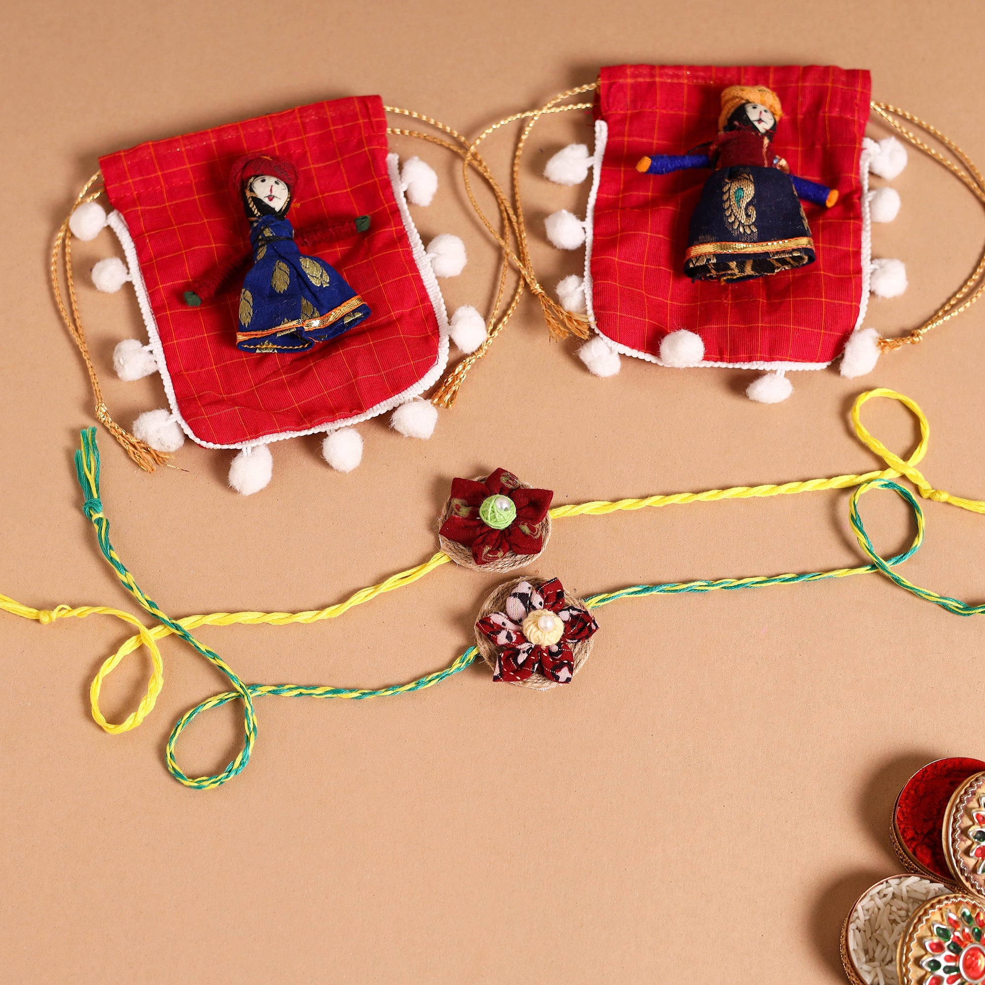 •  Handmade Fabric Flower Jute Rakhi (Set of 2)