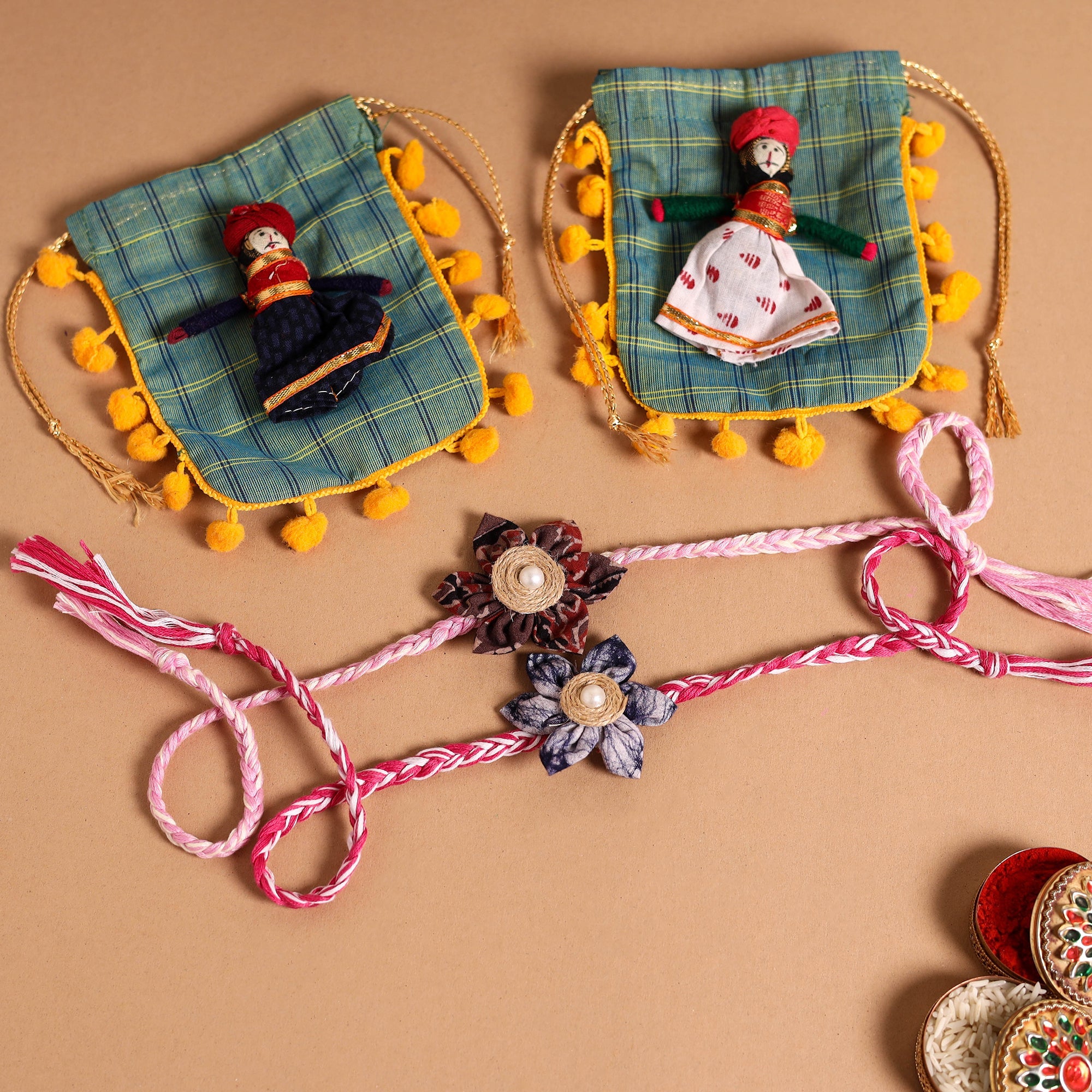 •  Handmade Fabric Flower Jute Rakhi (Set of 2)