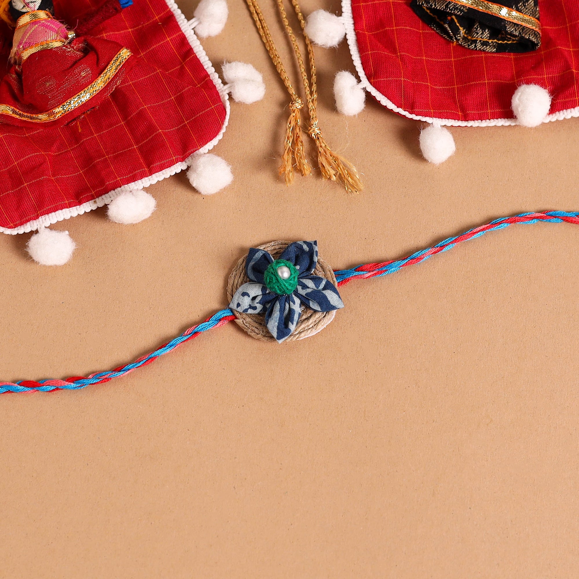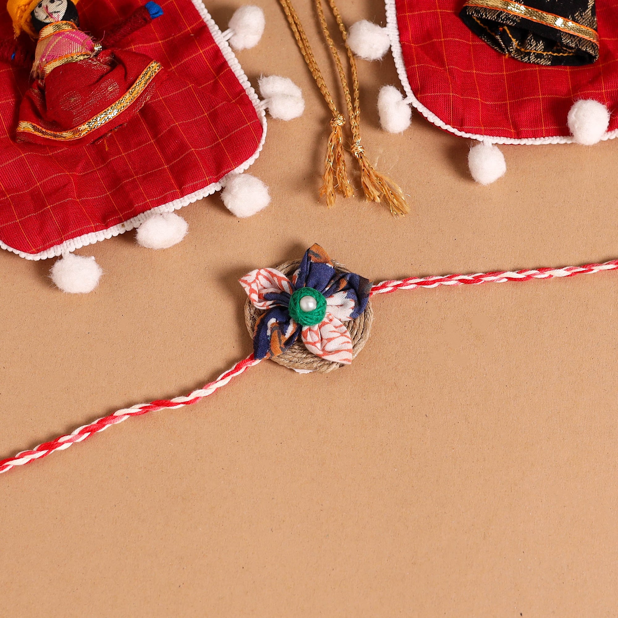 •  Handmade Fabric Flower Jute Rakhi (Set of 2)