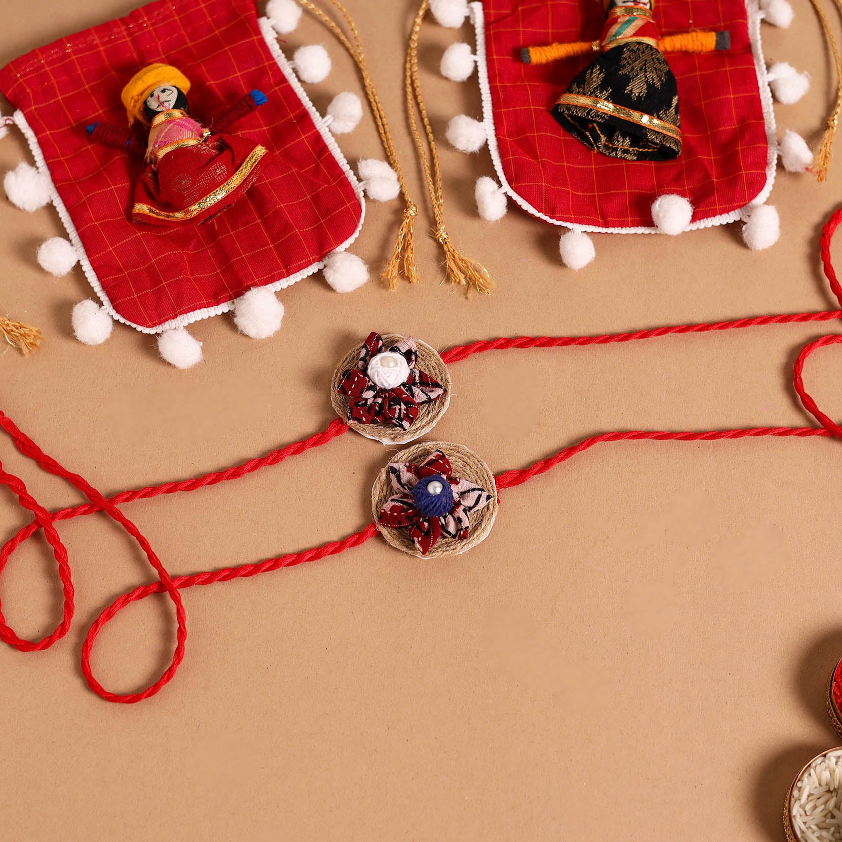 •  Handmade Fabric Flower Jute Rakhi (Set of 2)