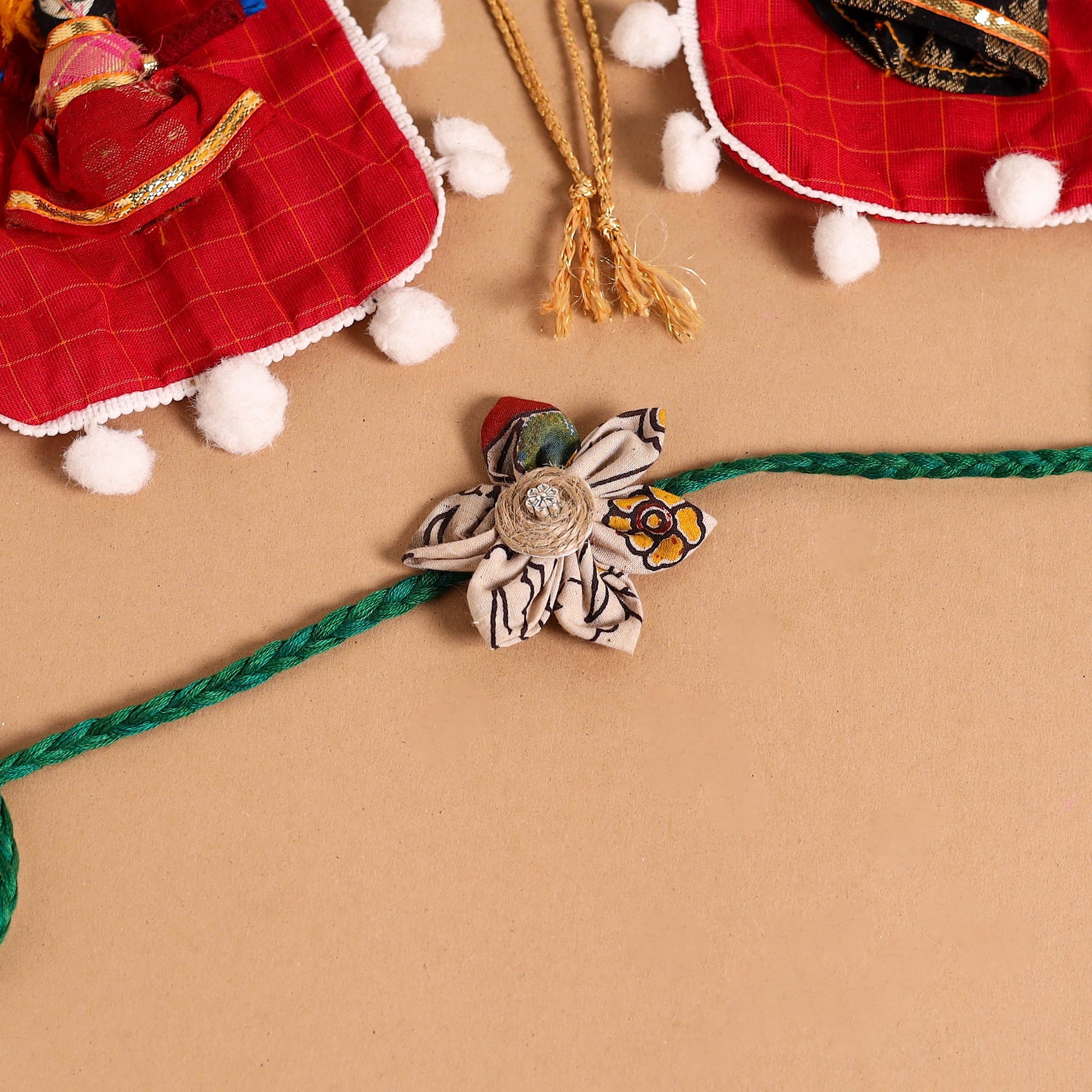 •  Handmade Fabric Flower Jute Rakhi (Set of 2)