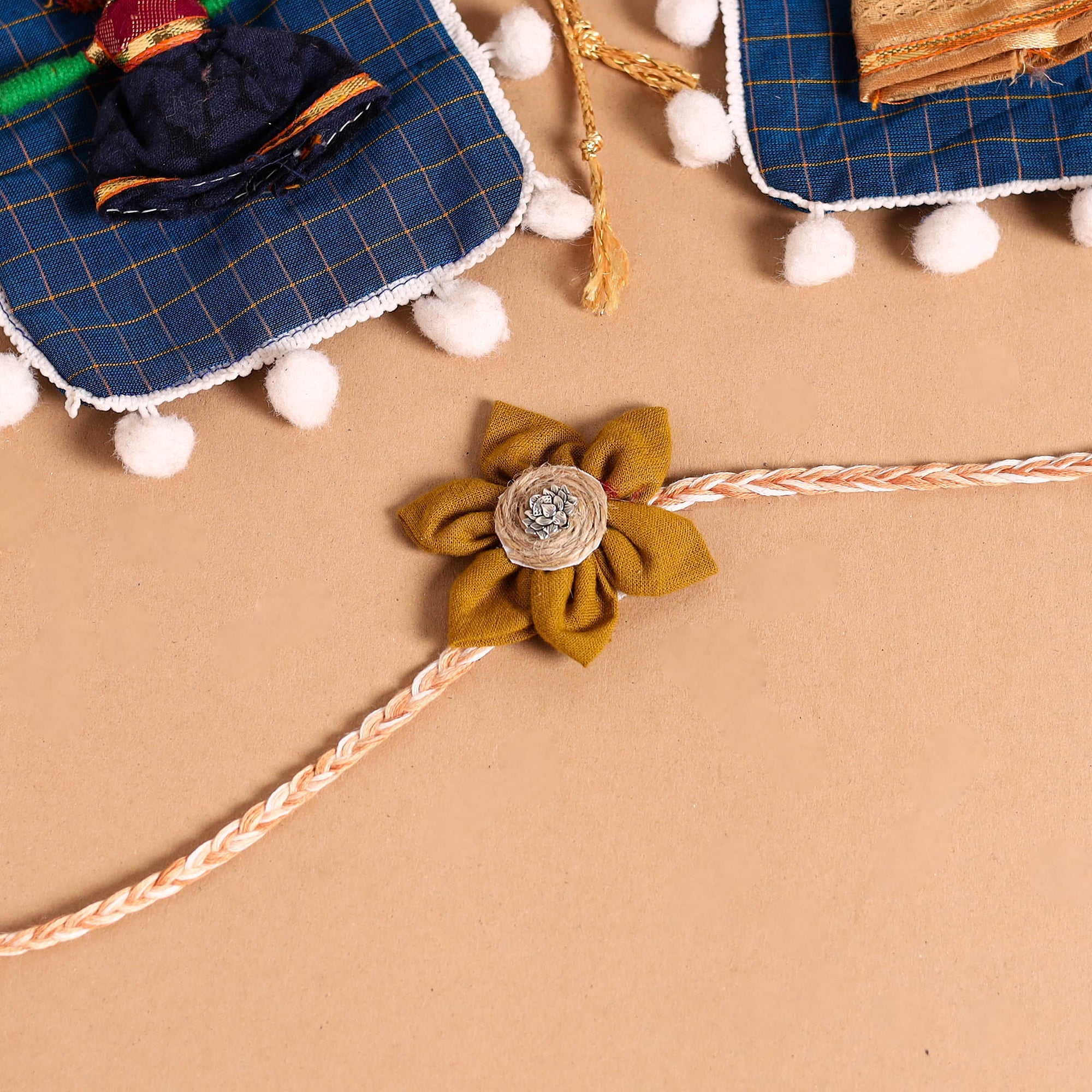 •  Handmade Fabric Flower Jute Rakhi (Set of 2)