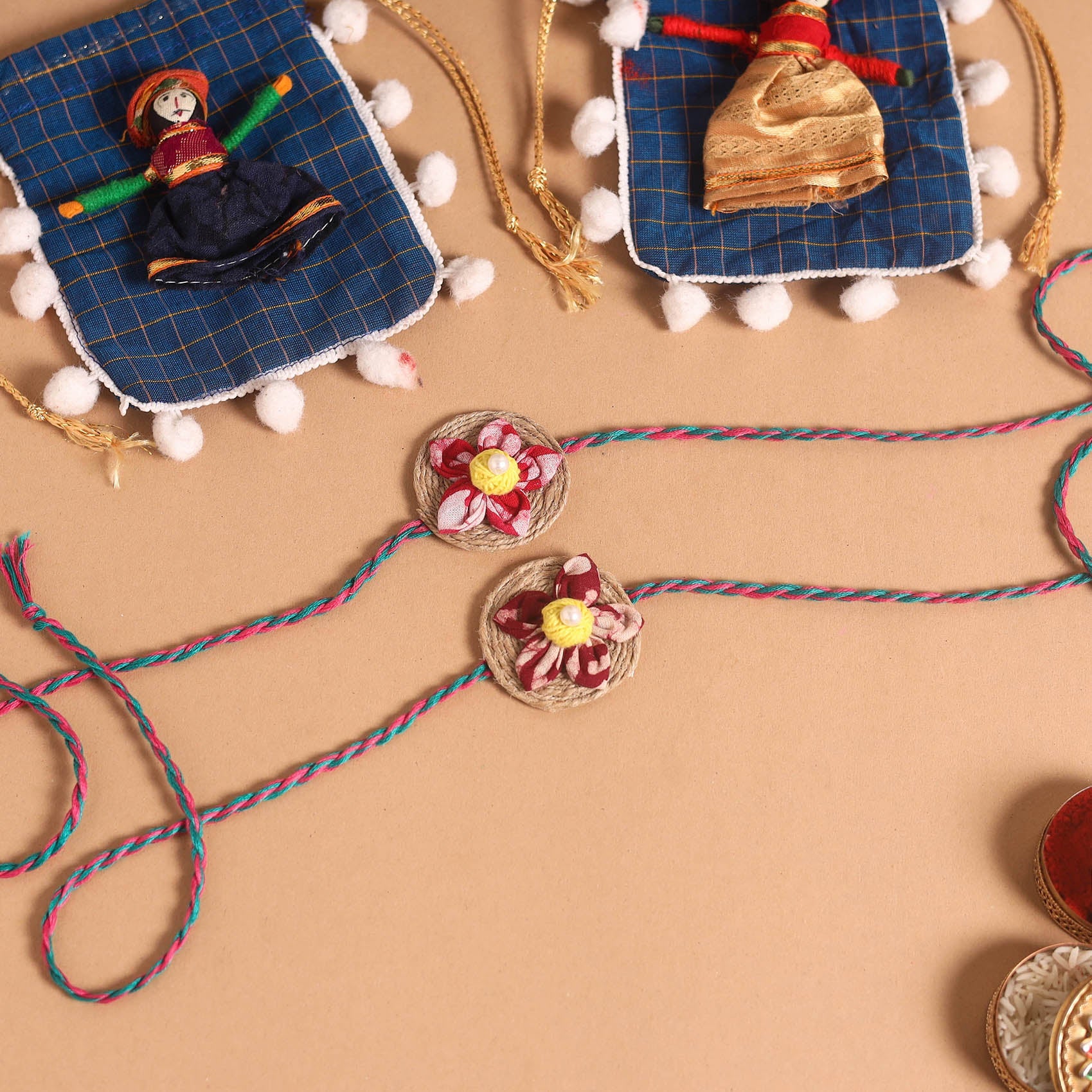 •  Handmade Fabric Flower Jute Rakhi (Set of 2)