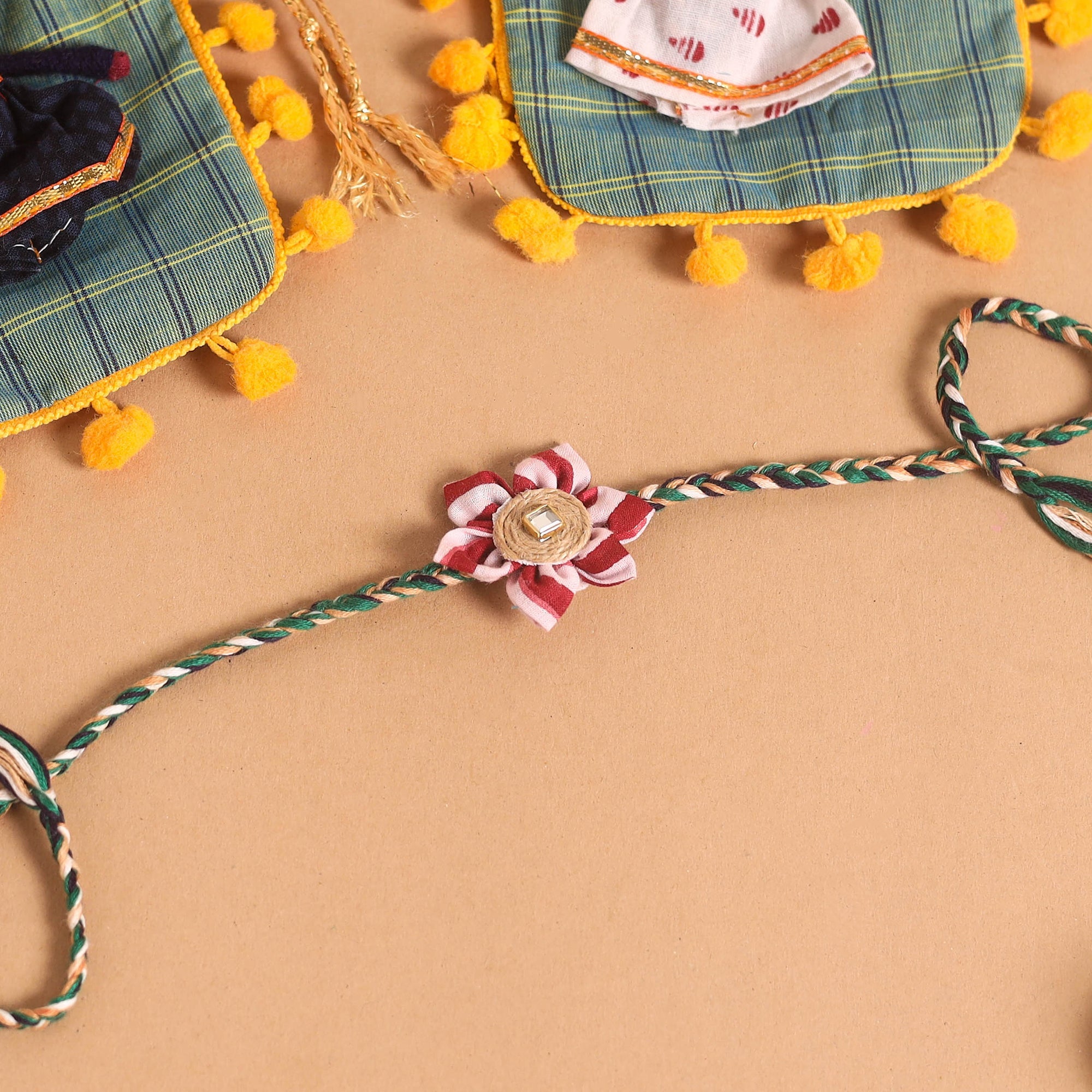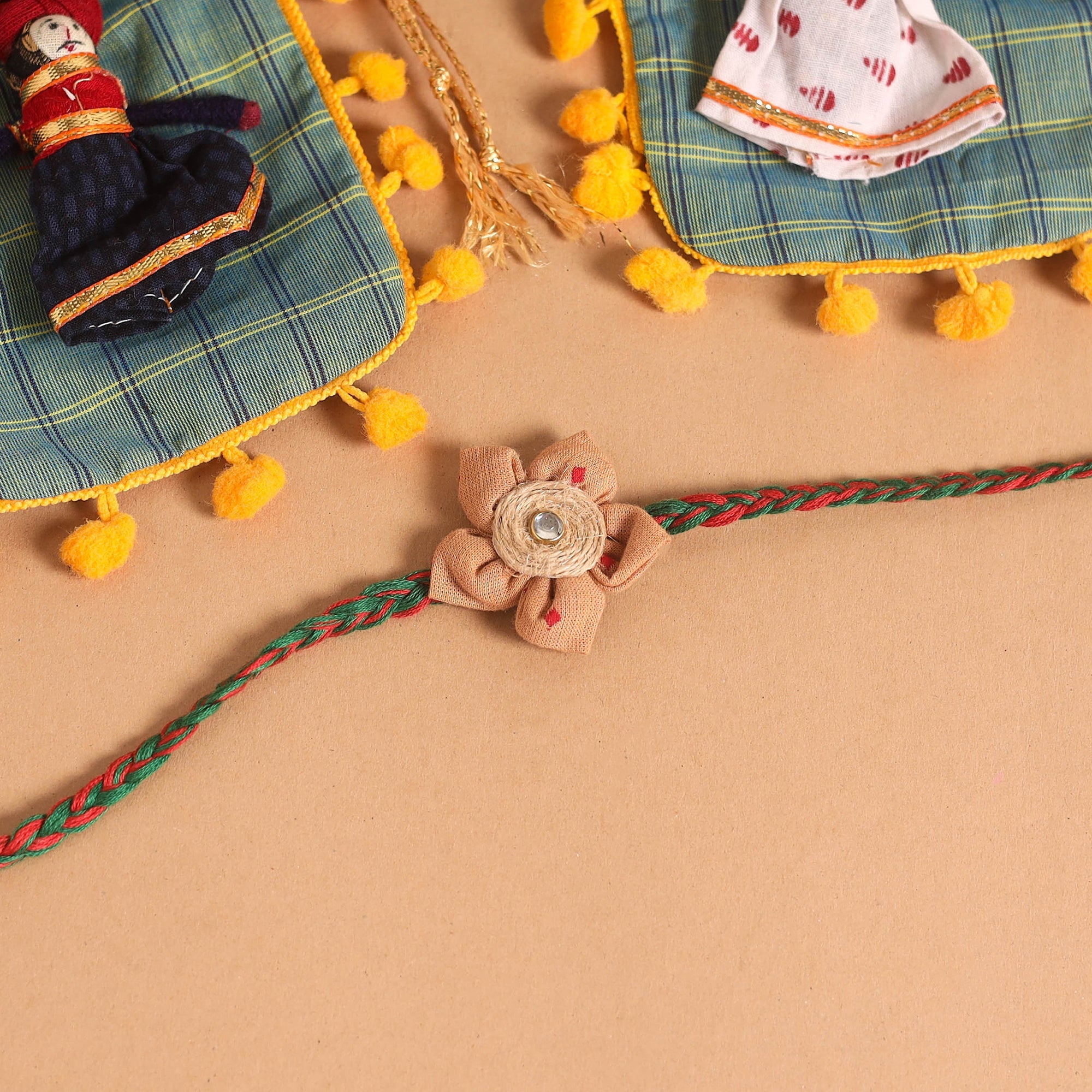 •  Handmade Fabric Flower Jute Rakhi (Set of 2)