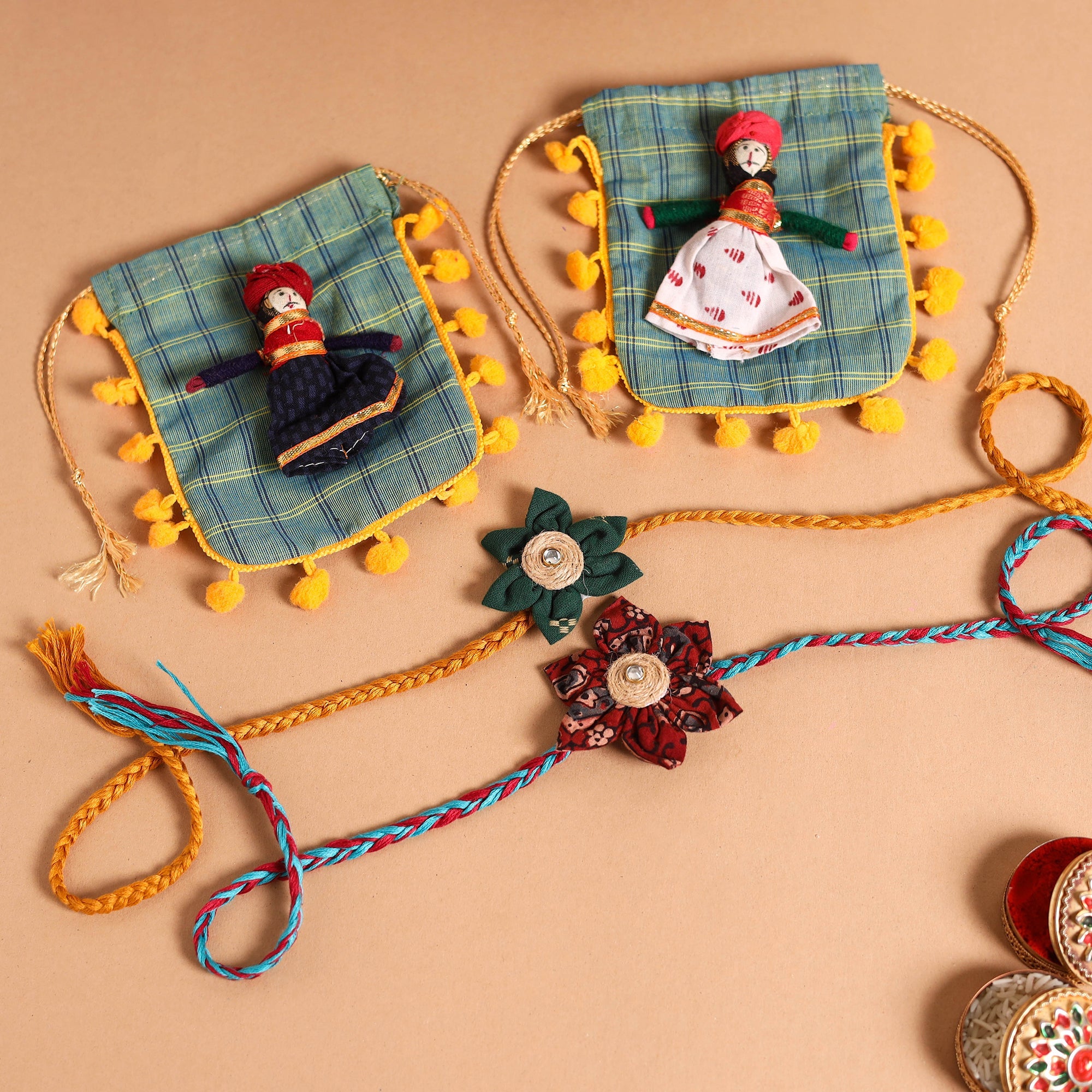 •  Handmade Fabric Flower Jute Rakhi (Set of 2)