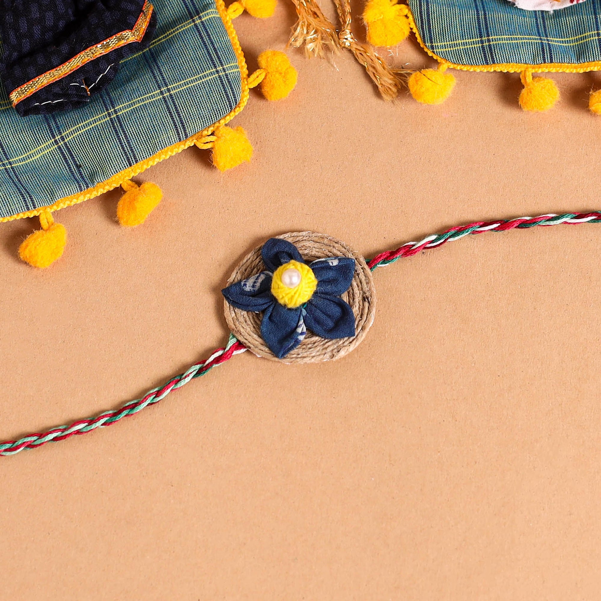 •  Handmade Fabric Flower Jute Rakhi (Set of 2)