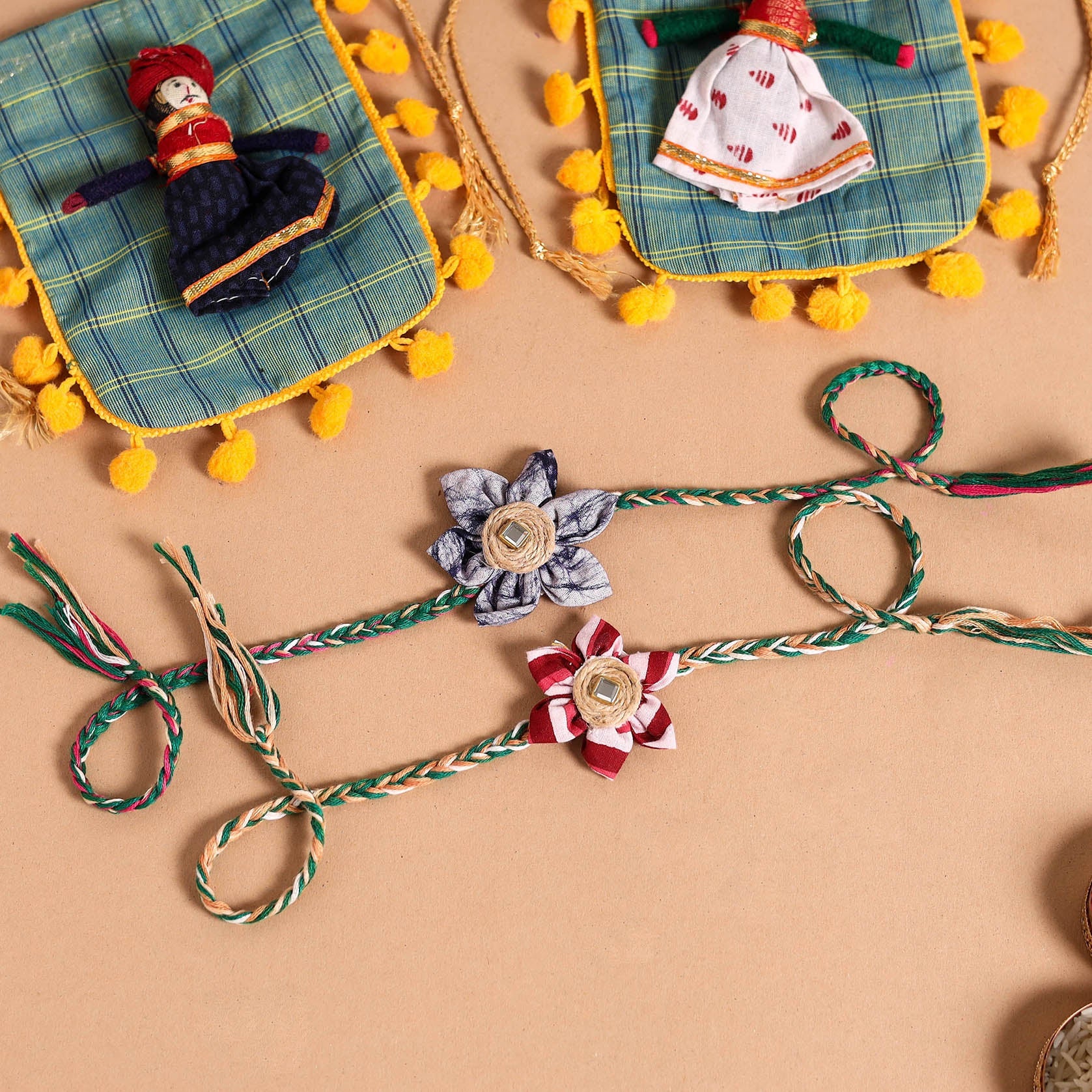 •  Handmade Fabric Flower Jute Rakhi (Set of 2)