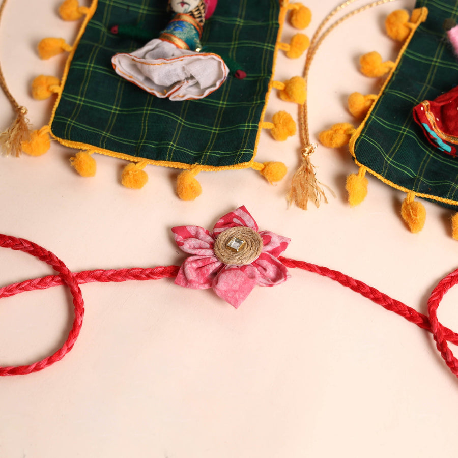 •  Handmade Fabric Flower Rakhi (Set of 2)