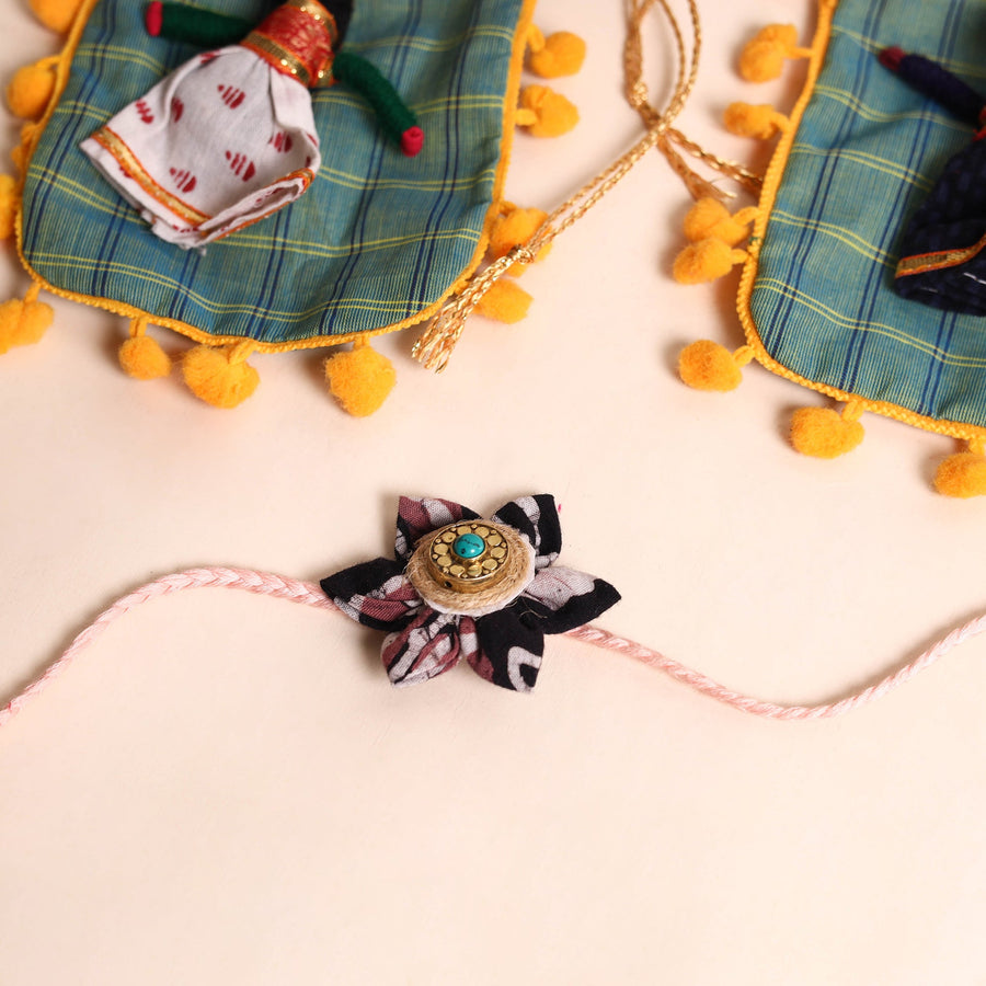 •  Handmade Fabric Flower Rakhi (Set of 2)
