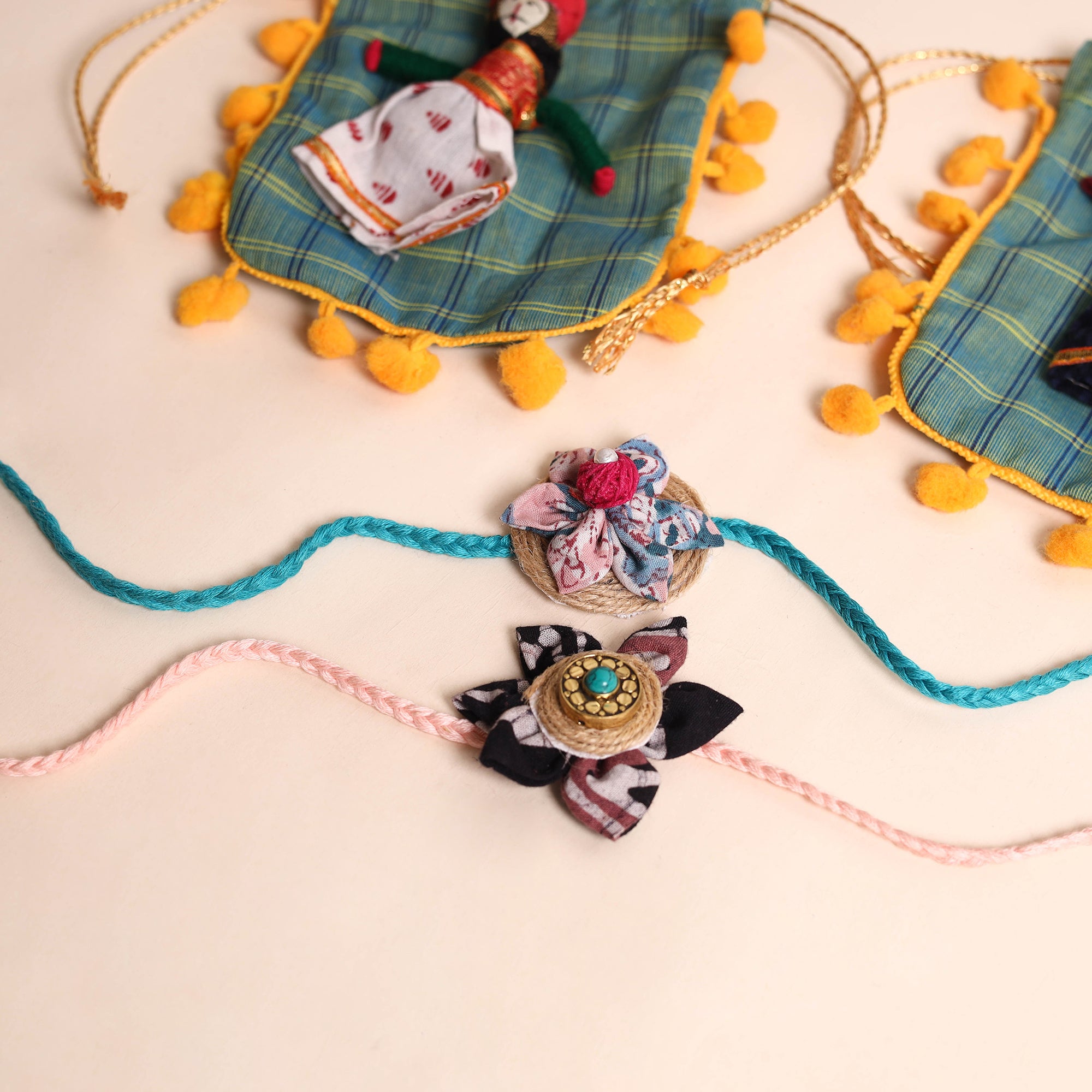 •  Handmade Fabric Flower Rakhi (Set of 2)