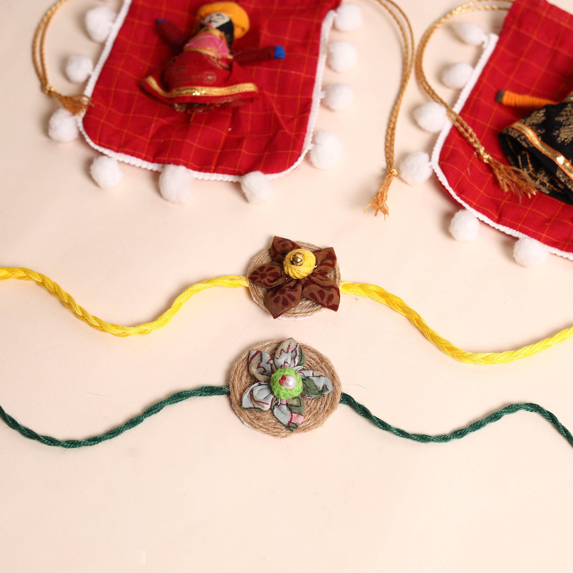•  Handmade Fabric Flower Rakhi (Set of 2)