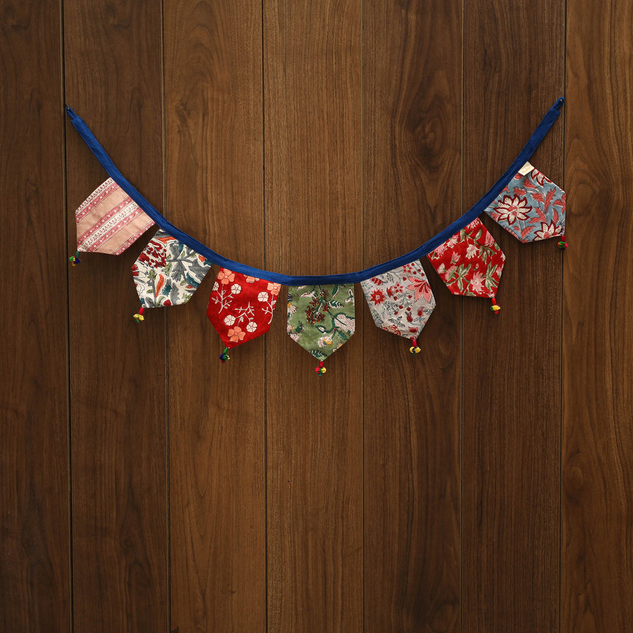 Celebrate with this multicolor handcrafted fabric toran, made by skilled artisans and adorned with beads and colorful pom-poms. Designed to bring festive cheer and charm, it decorates your doorway with a vibrant touch. Perfect for special occasions or everyday décor, the piece beautifully blends heritage with artistry.