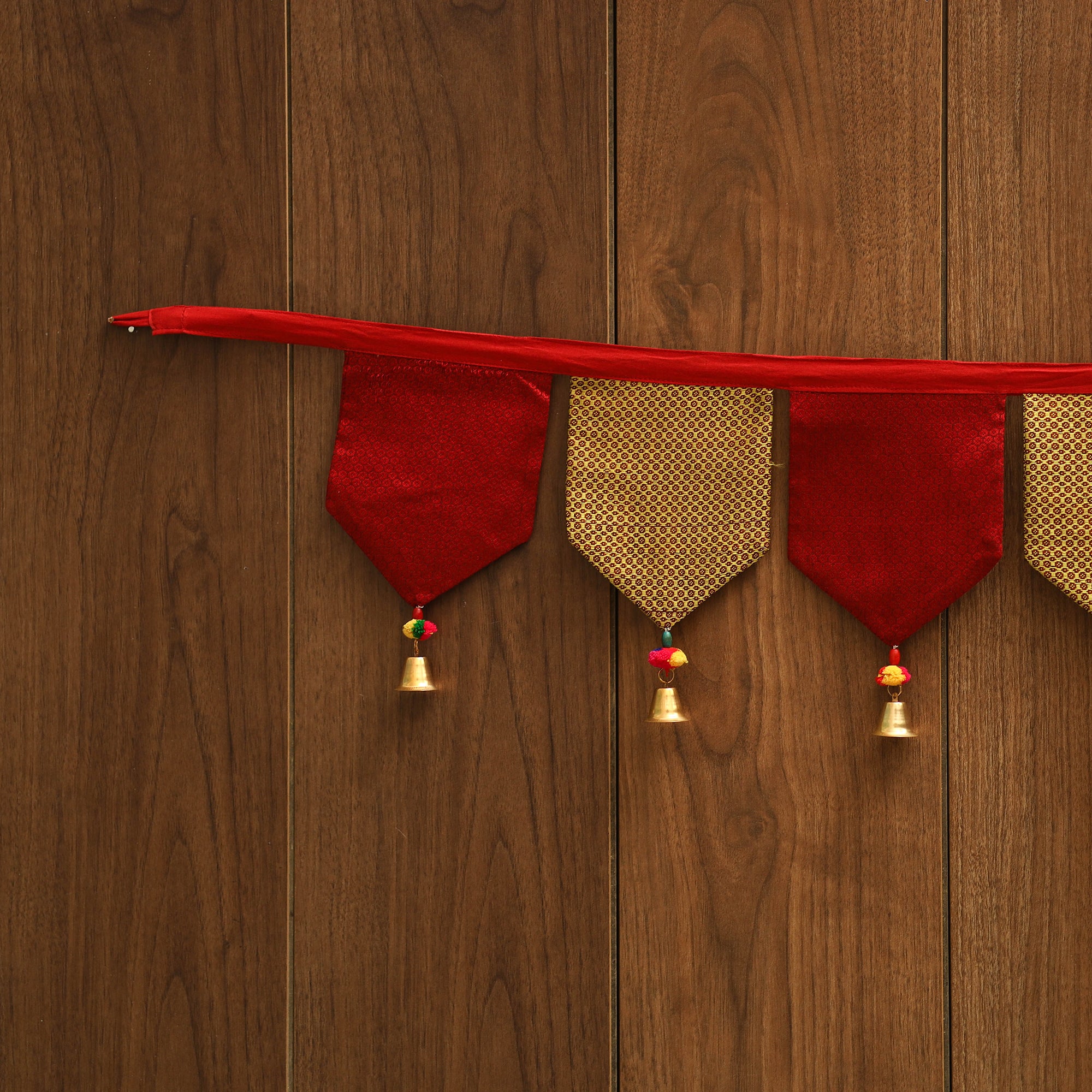 Celebrate with this handcrafted fabric toran, created by skilled artisans and decorated with beads and vibrant pom-poms. Designed to spread festive cheer, it brightens your doorway with a colorful touch. Perfect for special occasions or daily decor, this piece gracefully combines tradition with artistry.