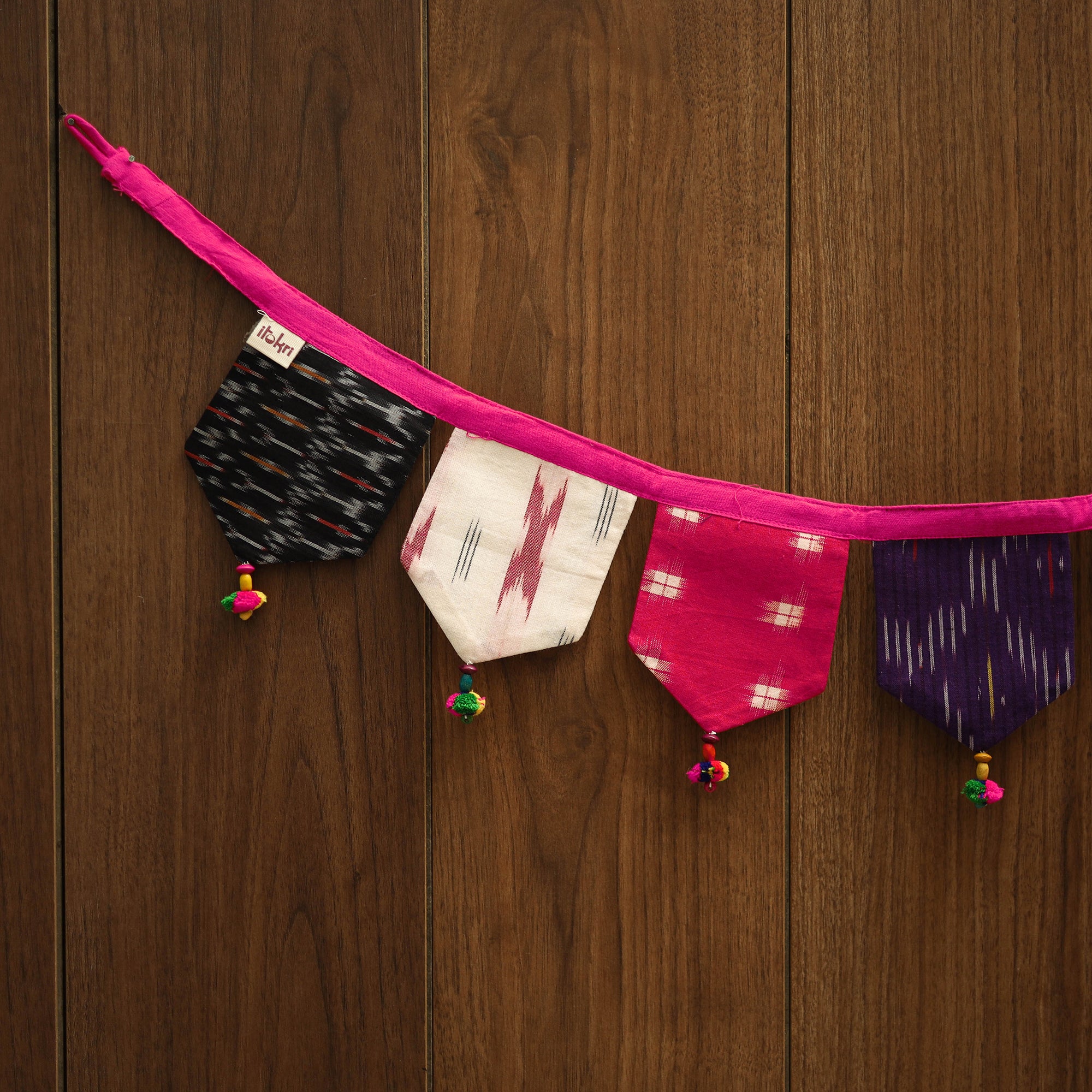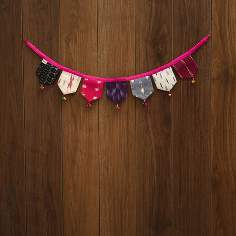 Celebrate with this multicolor handcrafted fabric toran, made by skilled artisans and adorned with beads and colorful pom-poms. Designed to bring festive cheer and charm, it decorates your doorway with a vibrant touch. Perfect for special occasions or everyday décor, the piece beautifully blends heritage with artistry.