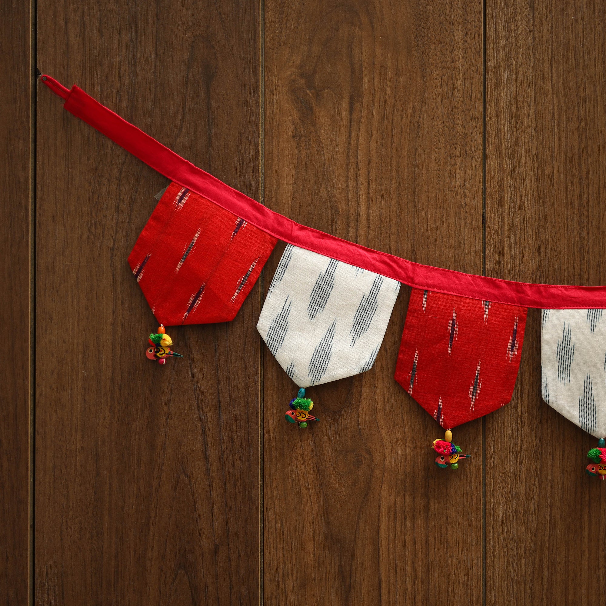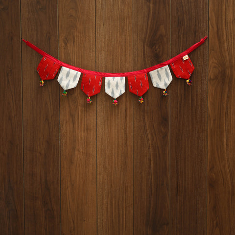 Celebrate with this multicolor handcrafted fabric toran, made by skilled artisans and adorned with beads and colorful pom-poms. Designed to bring festive cheer and charm, it decorates your doorway with a vibrant touch. Perfect for special occasions or everyday décor, the piece beautifully blends heritage with artistry.