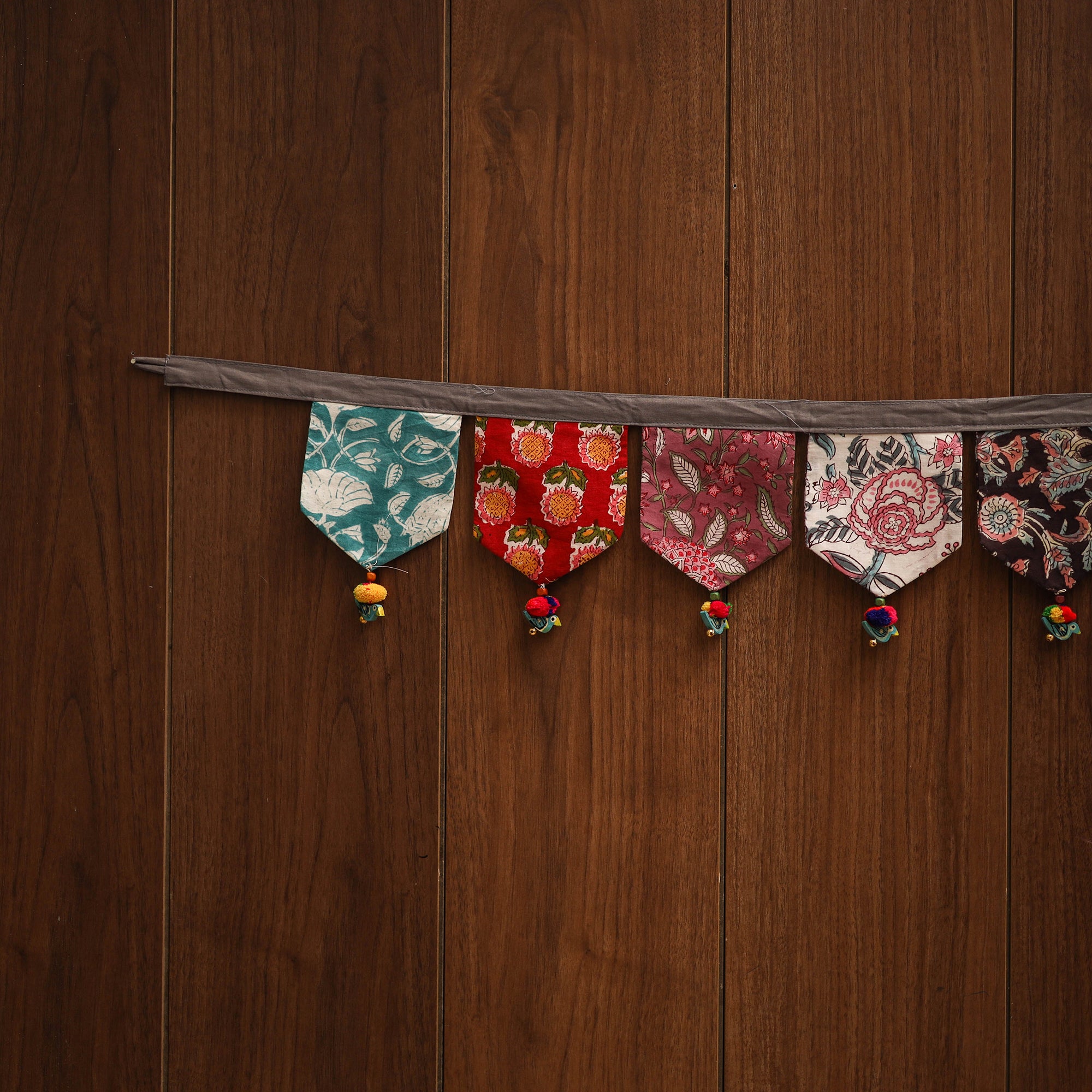 Celebrate with this handcrafted fabric toran, created by skilled artisans and decorated with beads and vibrant pom-poms. Designed to spread festive cheer, it brightens your doorway with a colorful touch. Perfect for special occasions or daily decor, this piece gracefully combines tradition with artistry.