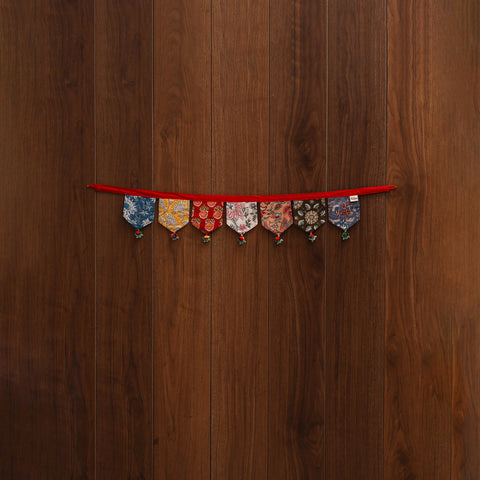 Celebrate with this handcrafted fabric toran, created by skilled artisans and decorated with beads and vibrant pom-poms. Designed to spread festive cheer, it brightens your doorway with a colorful touch. Perfect for special occasions or daily decor, this piece gracefully combines tradition with artistry.