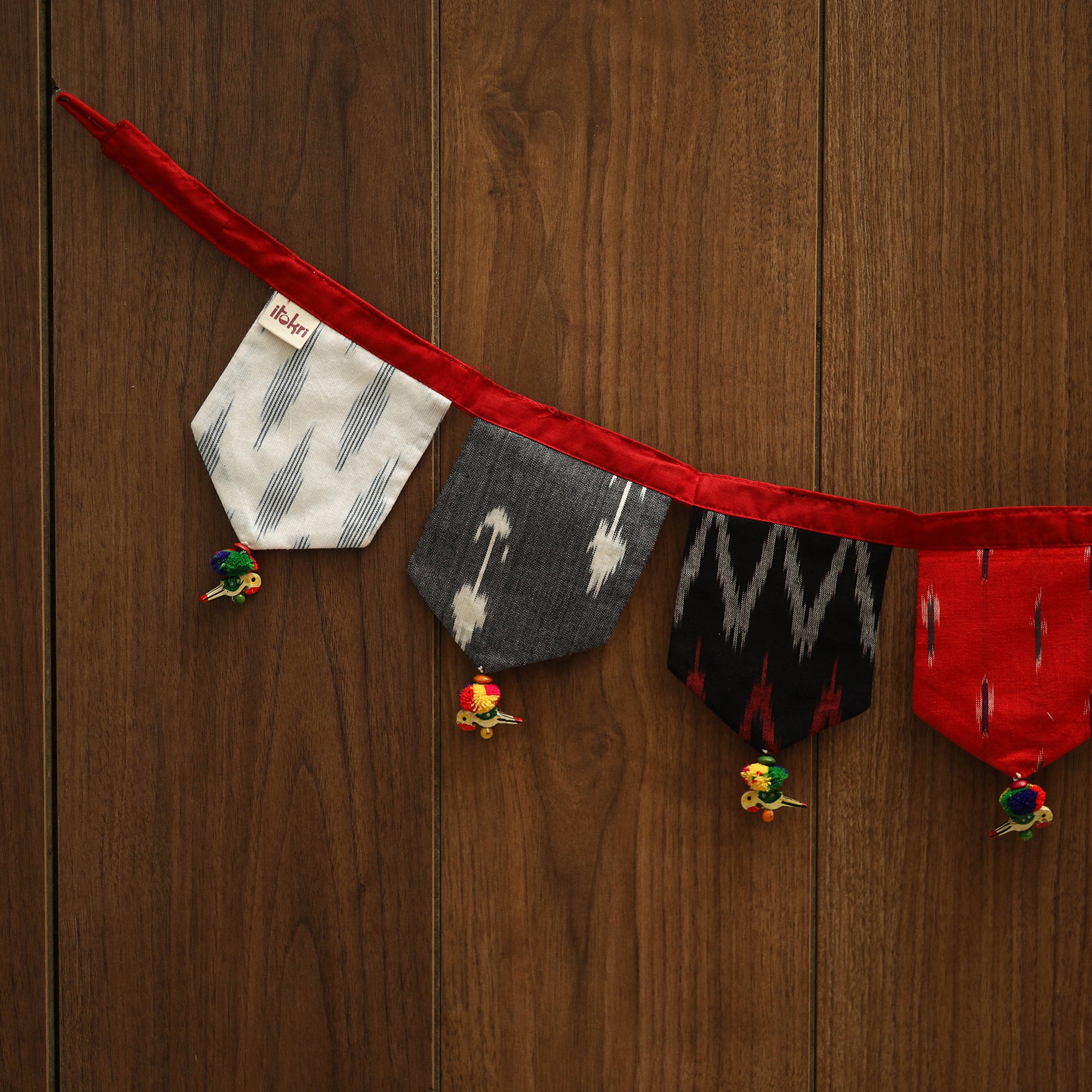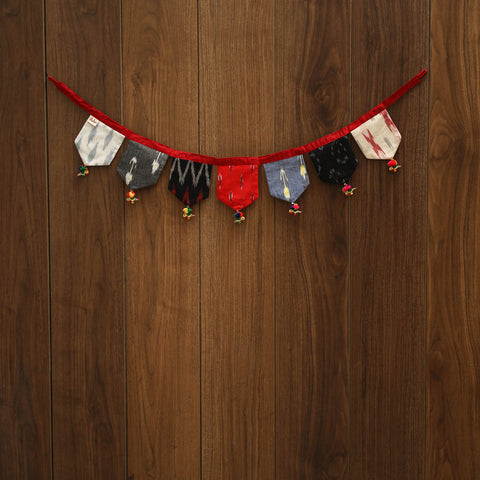 Celebrate with this multicolor handcrafted fabric toran, made by skilled artisans and adorned with beads and colorful pom-poms. Designed to bring festive cheer and charm, it decorates your doorway with a vibrant touch. Perfect for special occasions or everyday décor, the piece beautifully blends heritage with artistry.