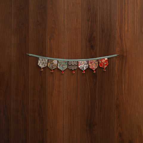 Celebrate with this handcrafted fabric toran, created by skilled artisans and decorated with beads and vibrant pom-poms. Designed to spread festive cheer, it brightens your doorway with a colorful touch. Perfect for special occasions or daily decor, this piece gracefully combines tradition with artistry.