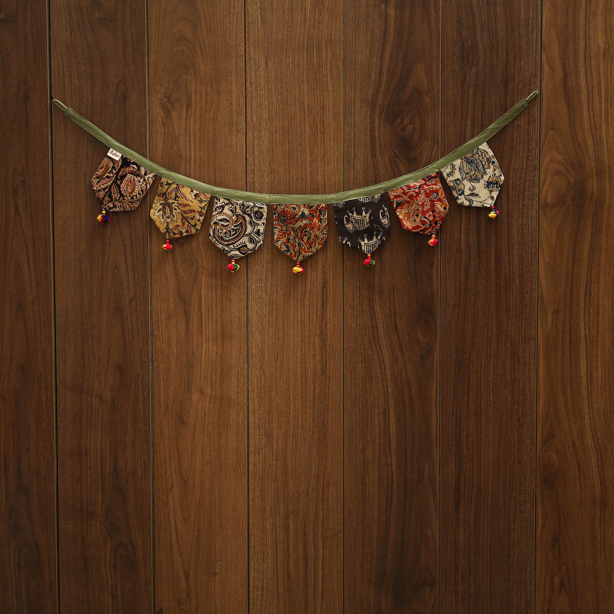 Celebrate with this multicolor handcrafted fabric toran, made by skilled artisans and adorned with beads and colorful pom-poms. Designed to bring festive cheer and charm, it decorates your doorway with a vibrant touch. Perfect for special occasions or everyday décor, the piece beautifully blends heritage with artistry.