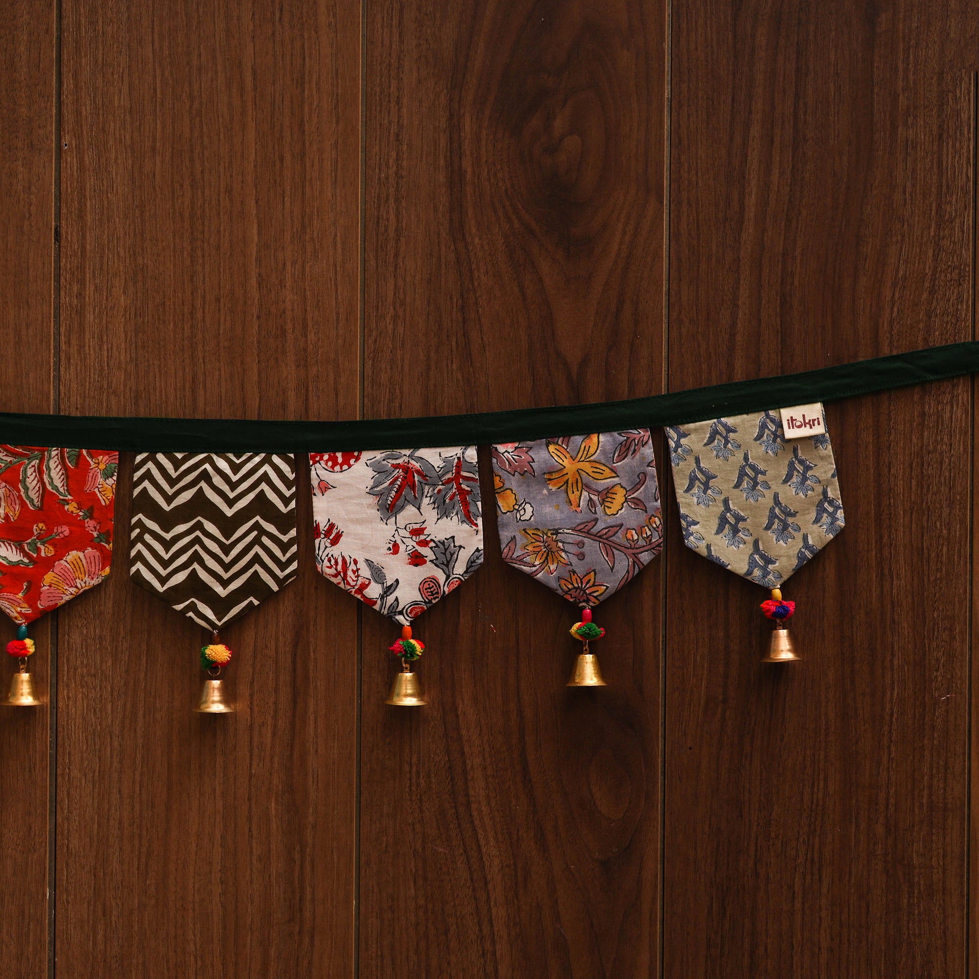 Celebrate with this handcrafted fabric toran, created by skilled artisans and decorated with beads and vibrant pom-poms. Designed to spread festive cheer, it brightens your doorway with a colorful touch. Perfect for special occasions or daily decor, this piece gracefully combines tradition with artistry.