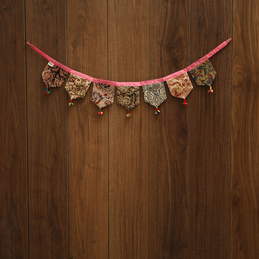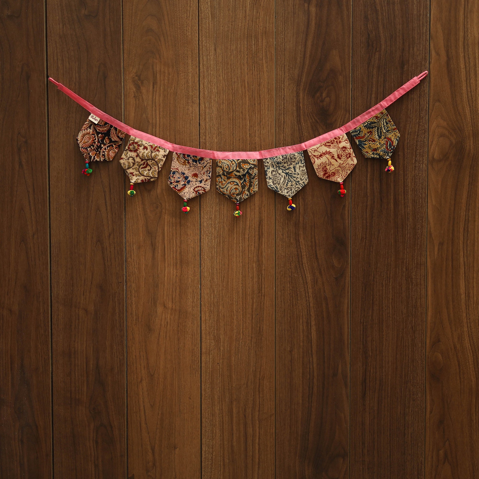 Celebrate with this multicolor handcrafted fabric toran, made by skilled artisans and adorned with beads and colorful pom-poms. Designed to bring festive cheer and charm, it decorates your doorway with a vibrant touch. Perfect for special occasions or everyday décor, the piece beautifully blends heritage with artistry.