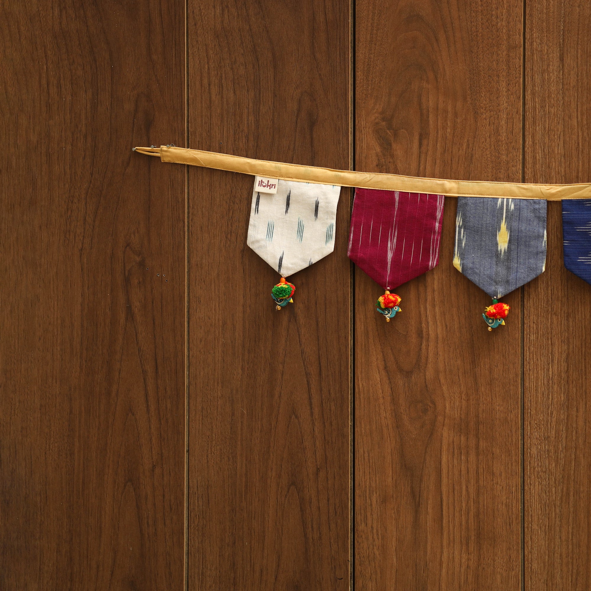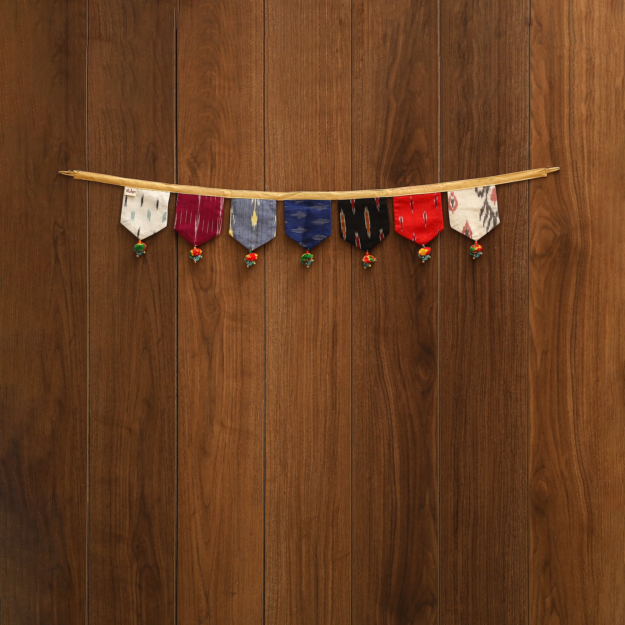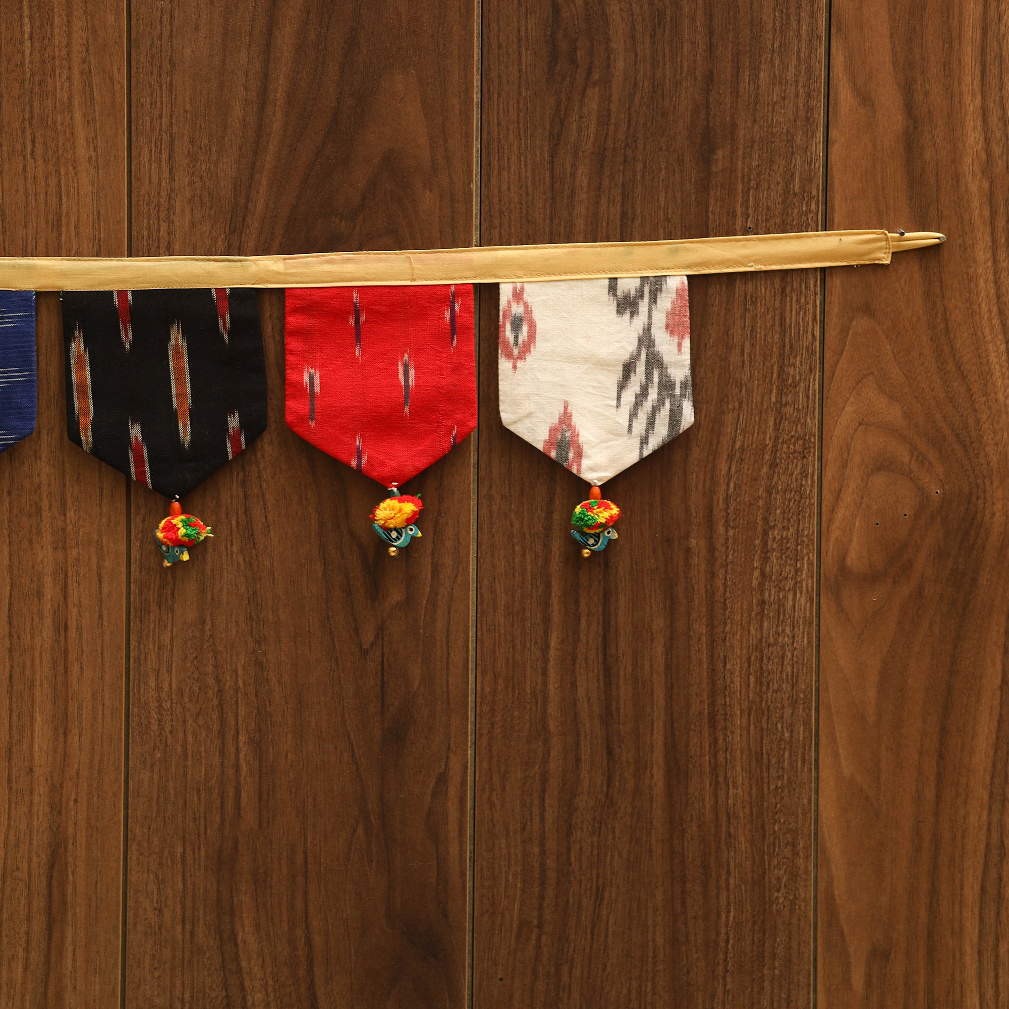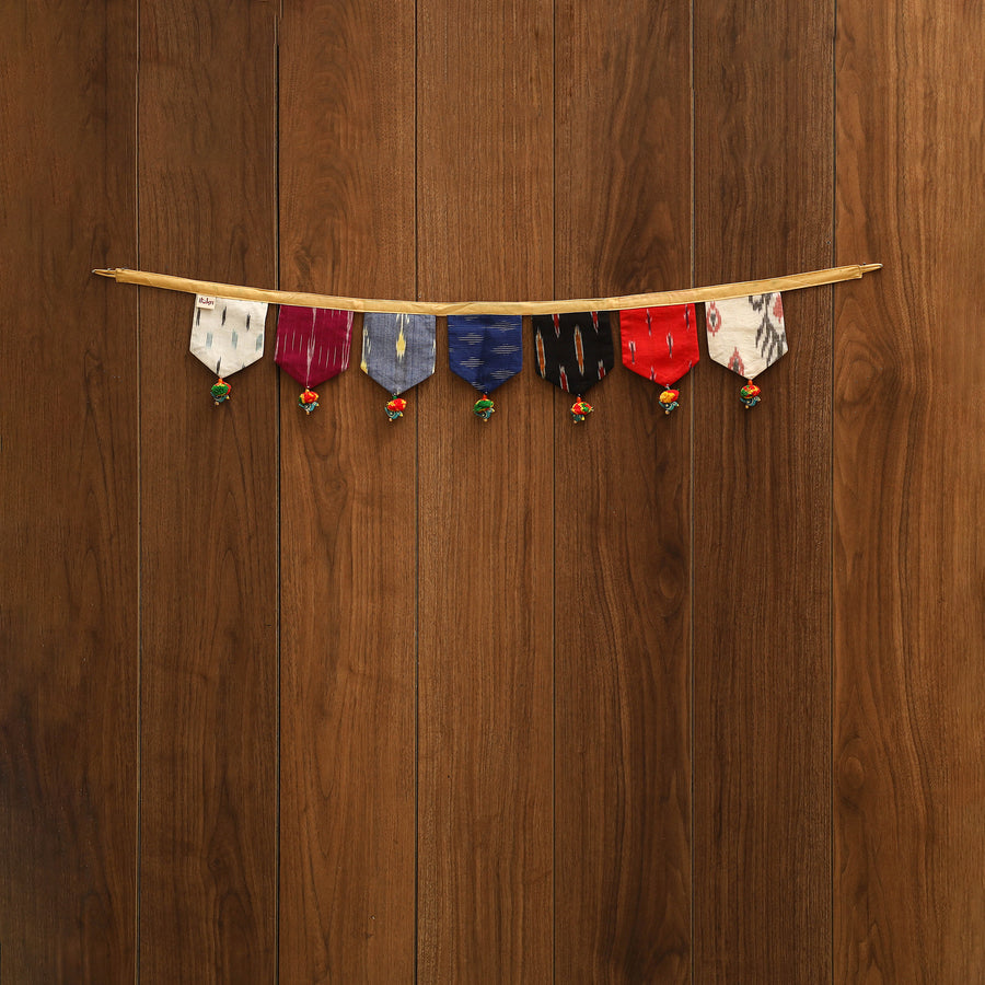 Celebrate with this handcrafted fabric toran, created by skilled artisans and decorated with beads and vibrant pom-poms. Designed to spread festive cheer, it brightens your doorway with a colorful touch. Perfect for special occasions or daily decor, this piece gracefully combines tradition with artistry.