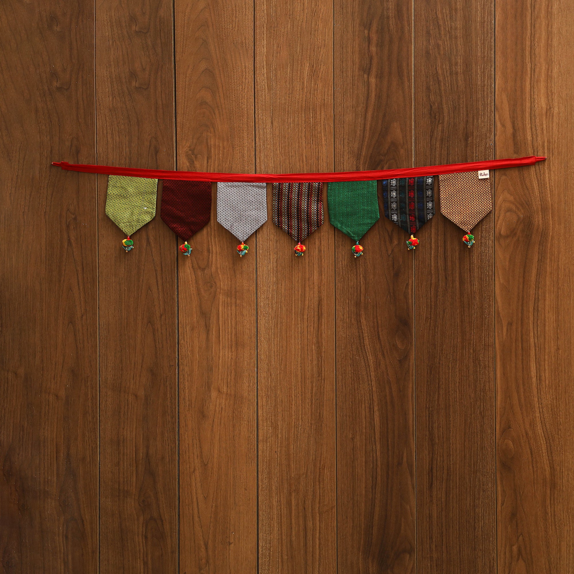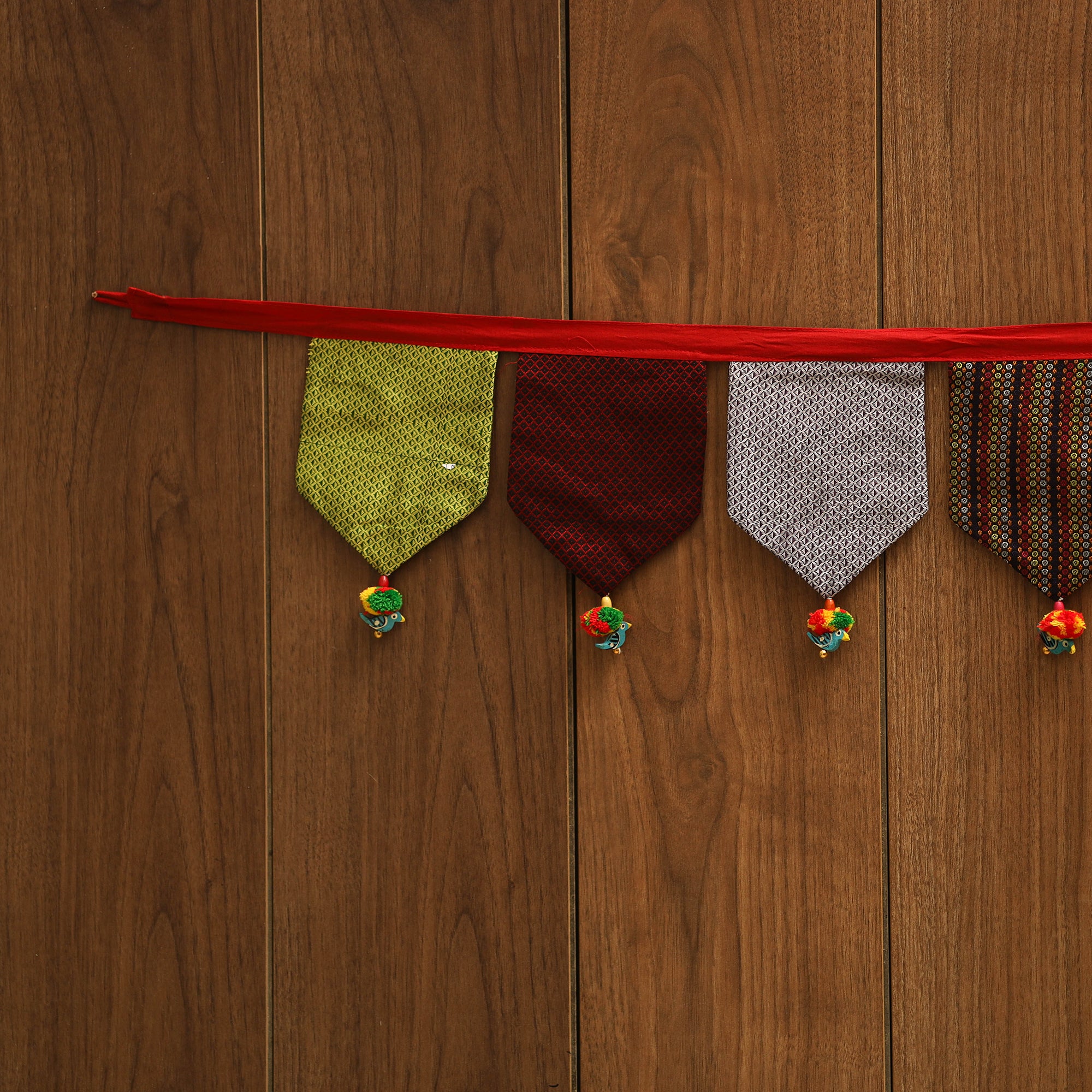 Celebrate with this handcrafted fabric toran, created by skilled artisans and decorated with beads and vibrant pom-poms. Designed to spread festive cheer, it brightens your doorway with a colorful touch. Perfect for special occasions or daily decor, this piece gracefully combines tradition with artistry.