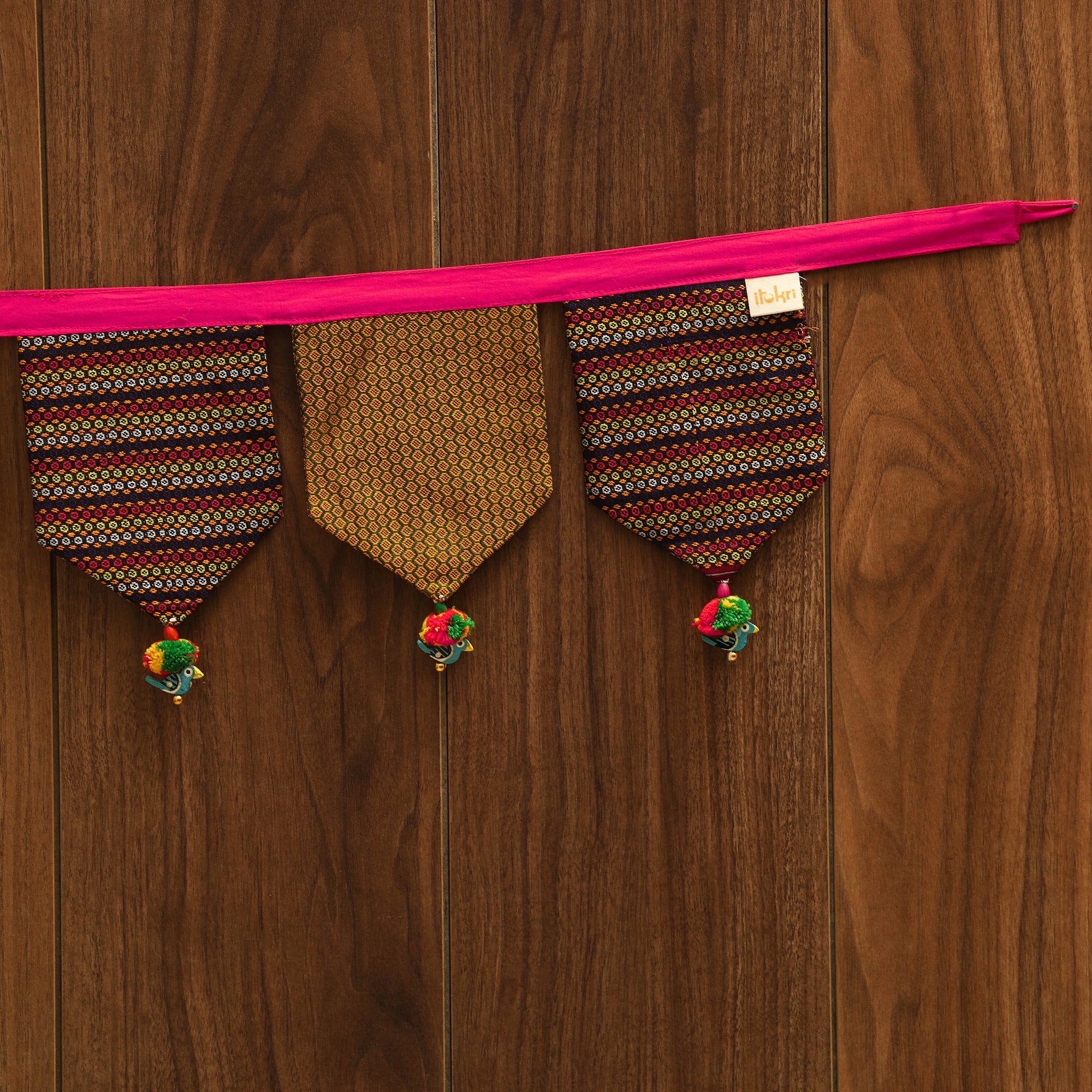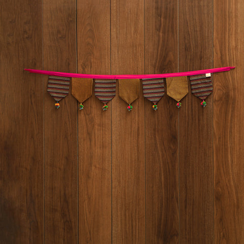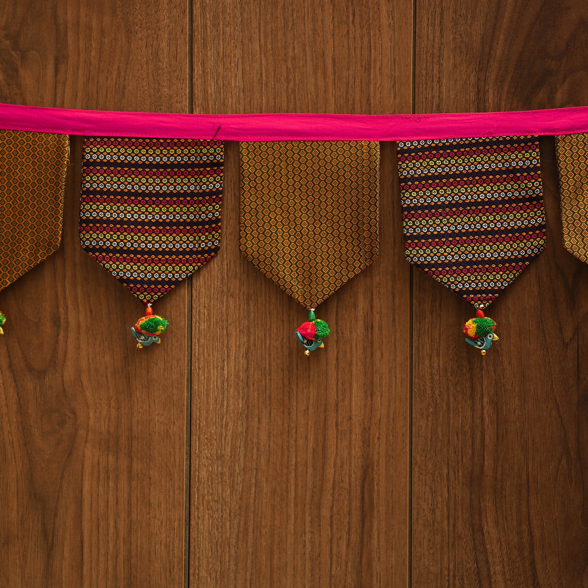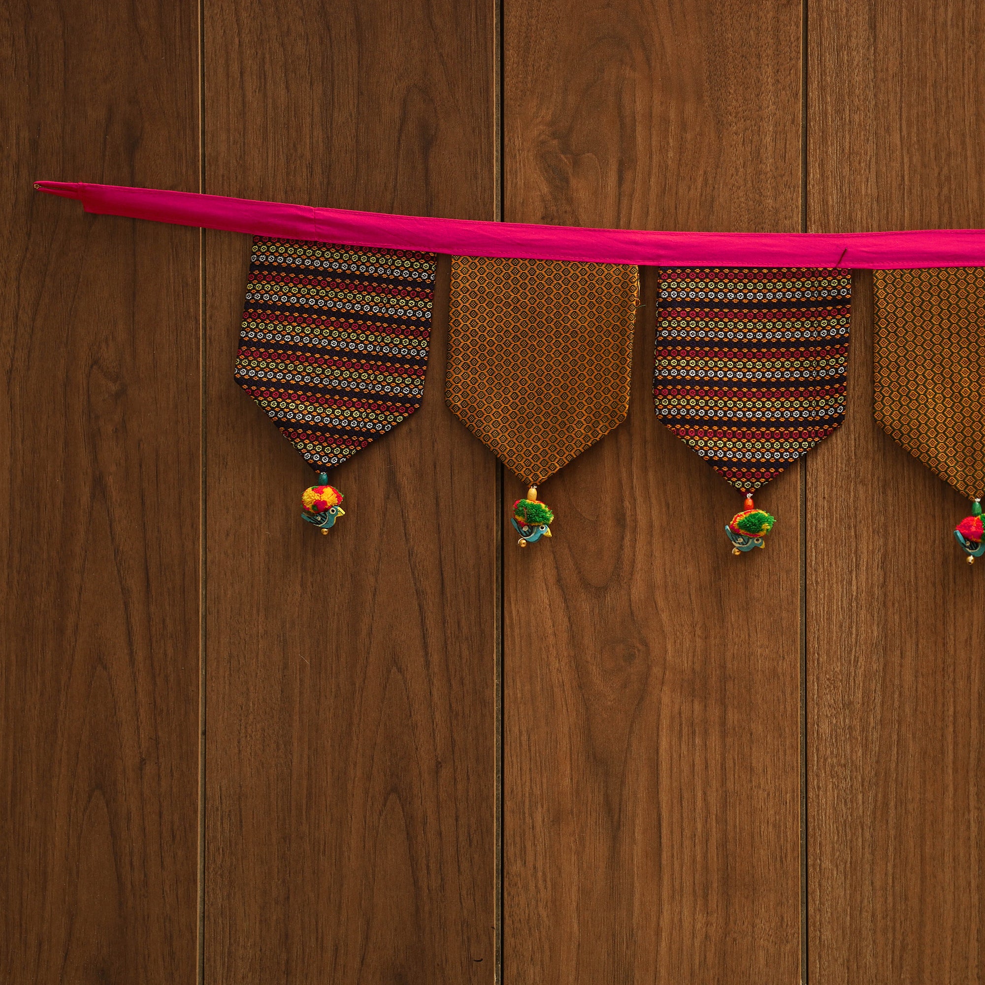 Celebrate with this handcrafted fabric toran, created by skilled artisans and decorated with beads and vibrant pom-poms. Designed to spread festive cheer, it brightens your doorway with a colorful touch. Perfect for special occasions or daily decor, this piece gracefully combines tradition with artistry.