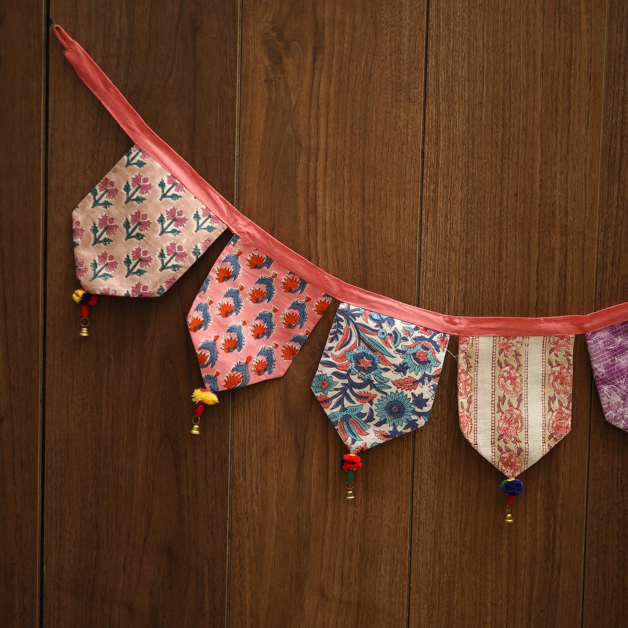 Celebrate with this multicolor handcrafted fabric toran, made by skilled artisans and adorned with beads and colorful pom-poms. Designed to bring festive cheer and charm, it decorates your doorway with a vibrant touch. Perfect for special occasions or everyday décor, the piece beautifully blends heritage with artistry.