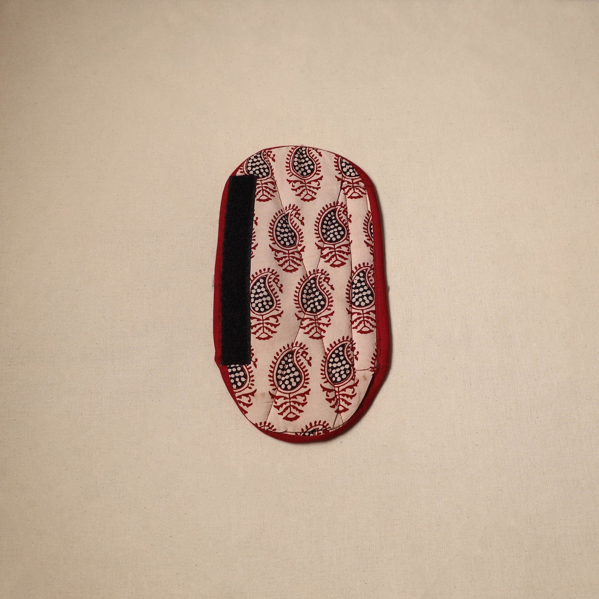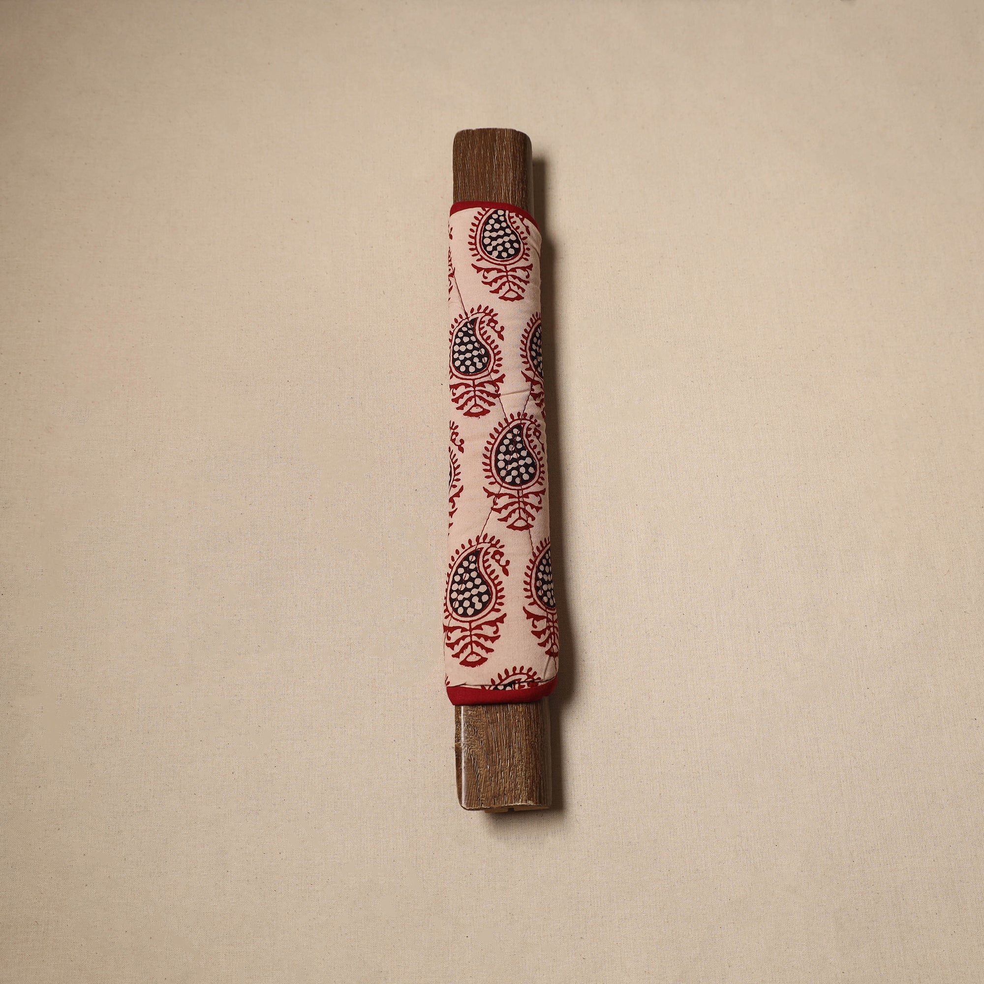 | Material | Handmade fridge handle cover made from bagh block print cotton fabric with soft foam lining. It protects fridge handles from stains, dirt and smudges. Stylish yet functional, it enhances your kitchen’s look while keeping it neat and tidy. It is washable and easy to wrap with velcro closures. |