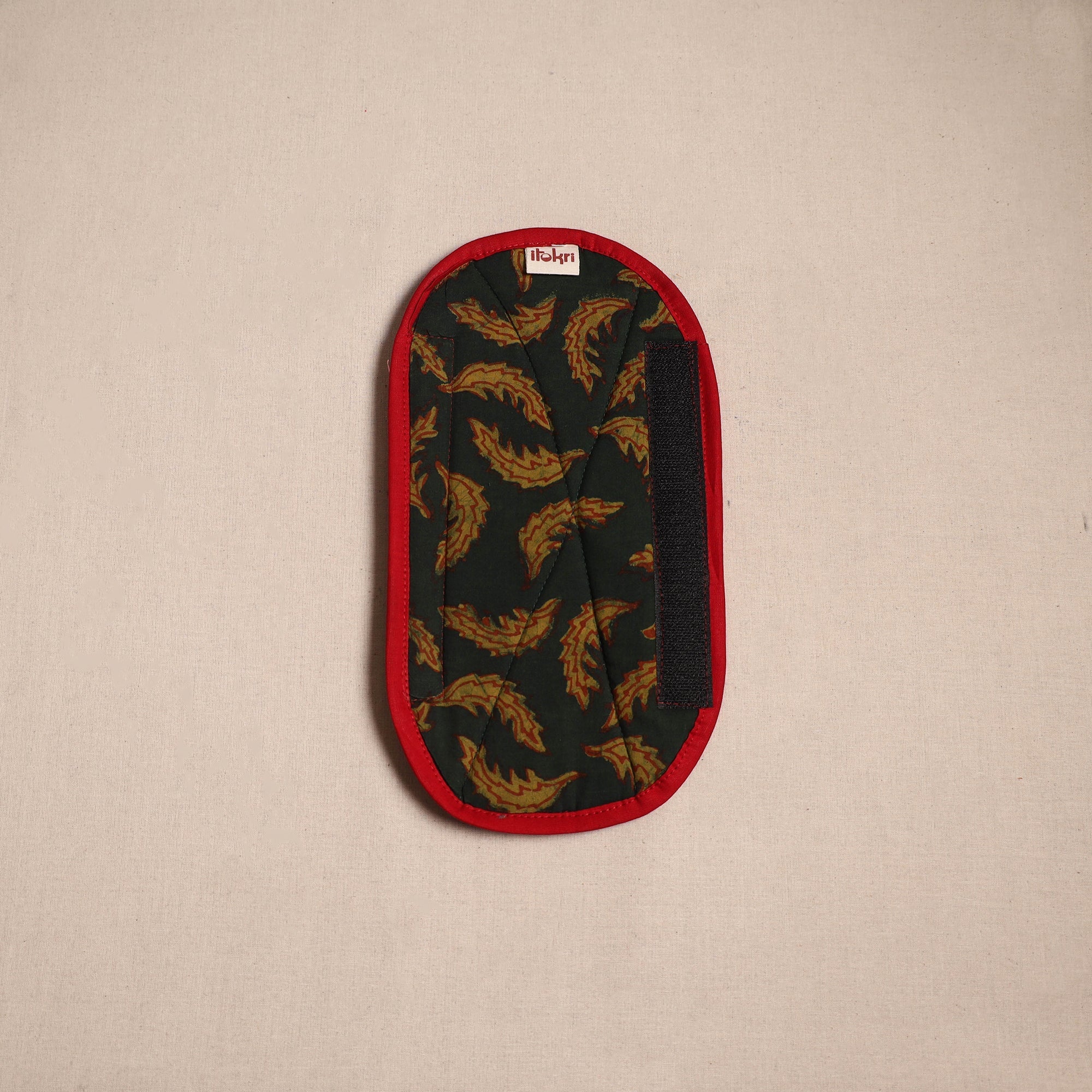 | Material | Green handmade fridge handle cover made with akola hand block print cotton fabric and soft foam lining. It protects fridge handles from stains, dirt and smudges. Stylish yet functional, it enhances your kitchen’s look while keeping it neat and tidy. It is washable and easy to wrap with velcro closures. |