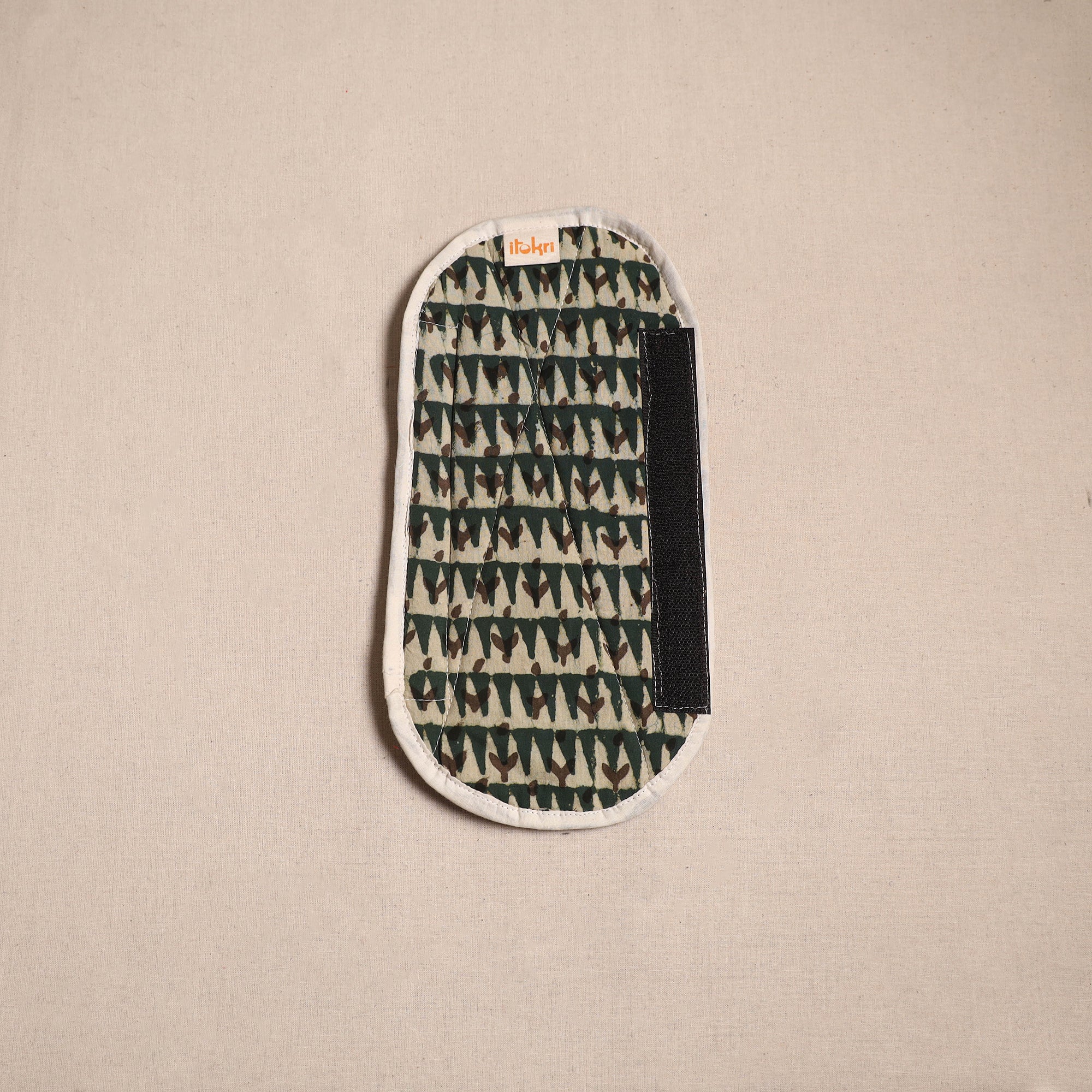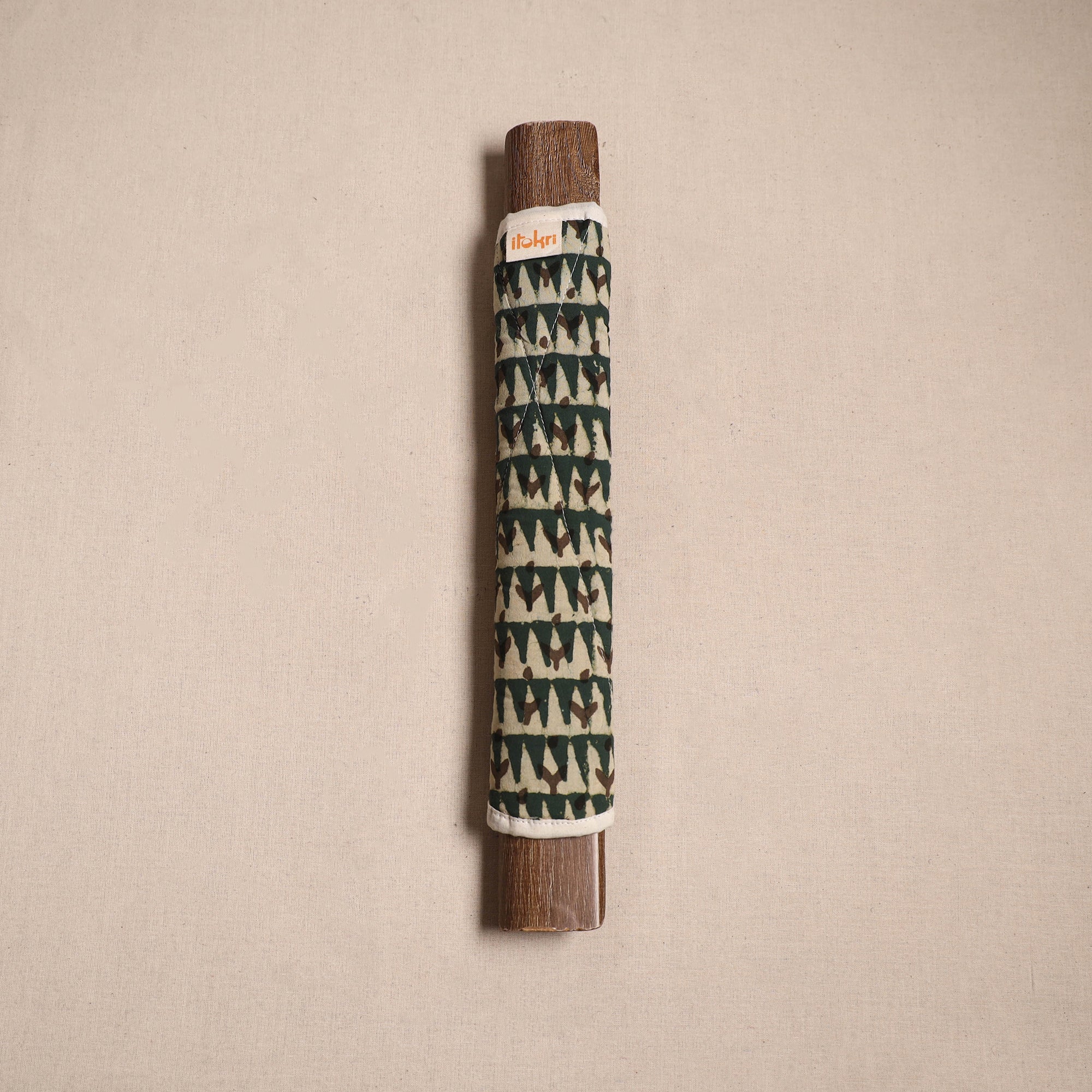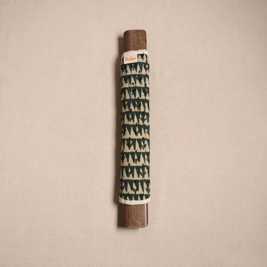 | Material | Green handmade fridge handle cover made with pipad hand block print cotton fabric and soft foam lining. It protects fridge handles from stains, dirt and smudges. Stylish yet functional, it enhances your kitchen’s look while keeping it neat and tidy. It is washable and easy to wrap with velcro closures. |