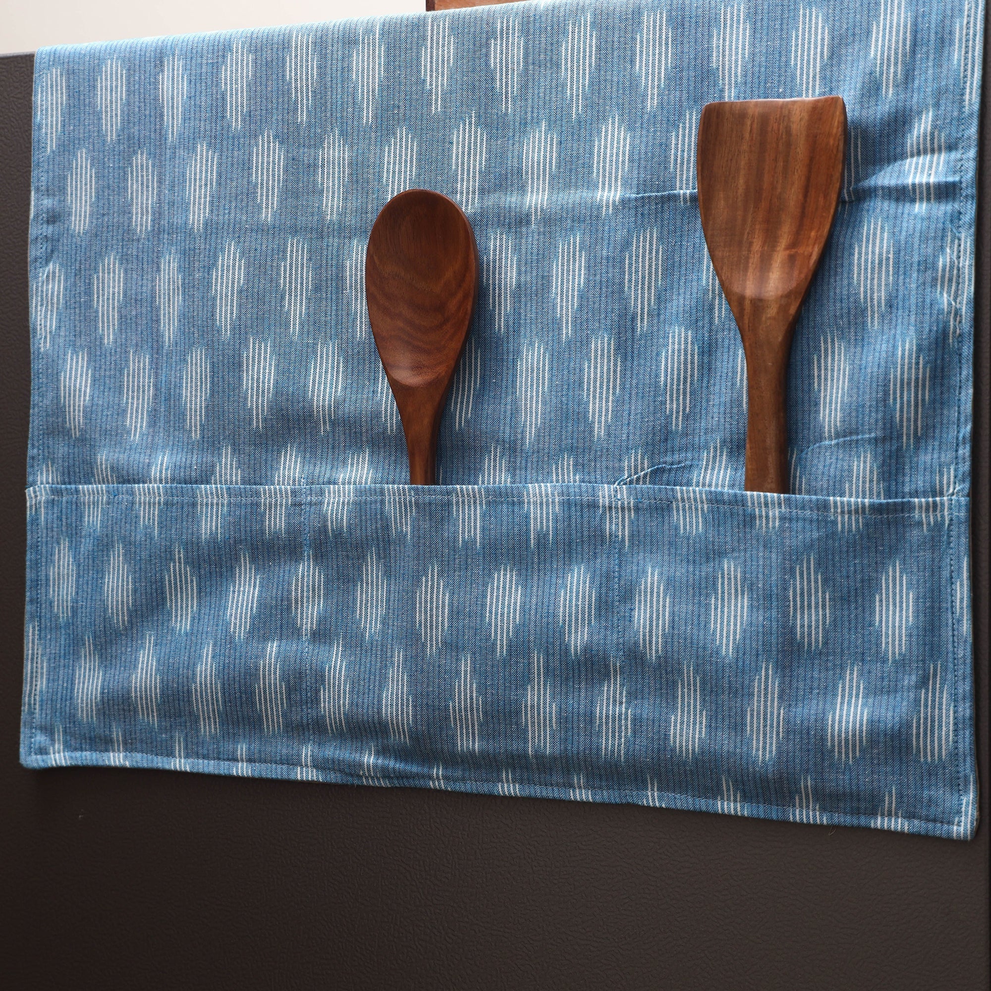 | Material | This blue fridge top cover is made from Indian handcrafted cotton textiles. It helps protect your fridge from dust, stains and everyday marks. The six stitched pockets provide convenient storage for small kitchen tools and other daily use items. |