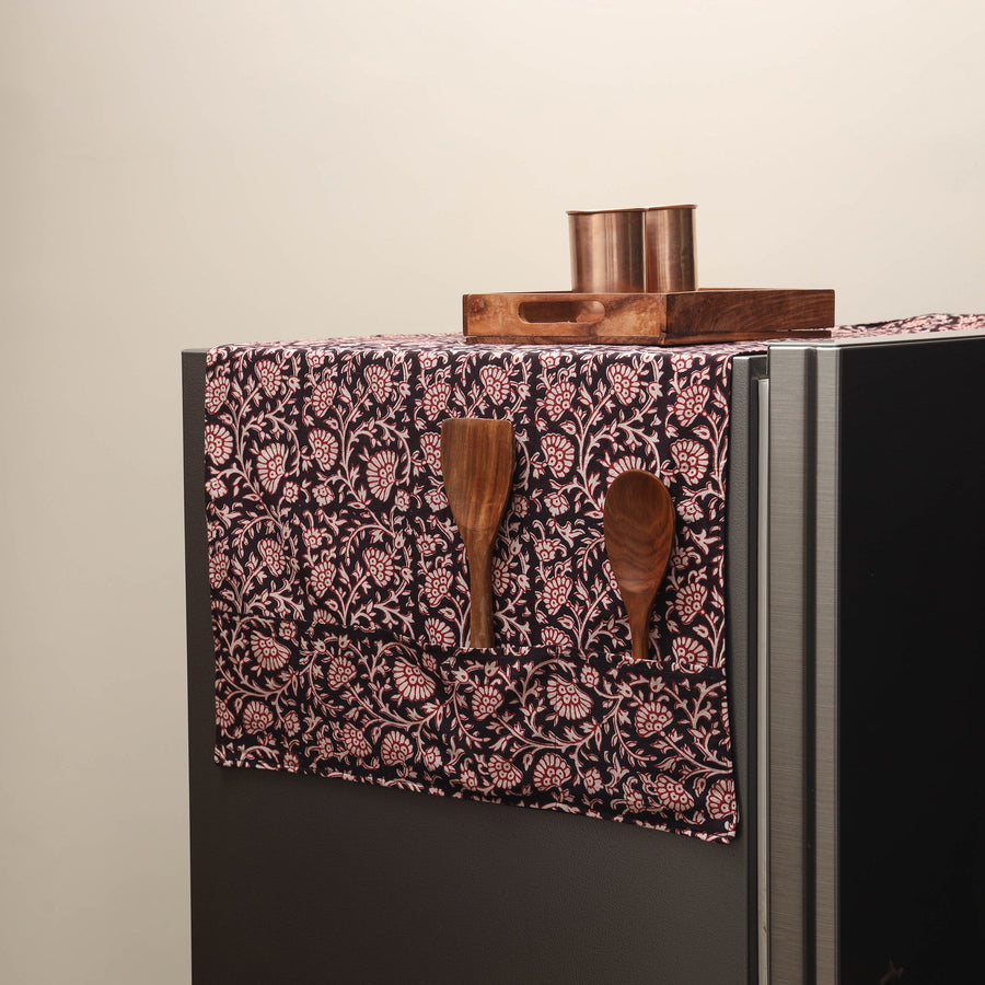 Fridge top cover is made from artisanal indian cotton fabrics. It helps protect your fridge from dust, stains, and everyday marks. The six stitched pockets provide convenient storage for small kitchen tools or other daily-use items.
