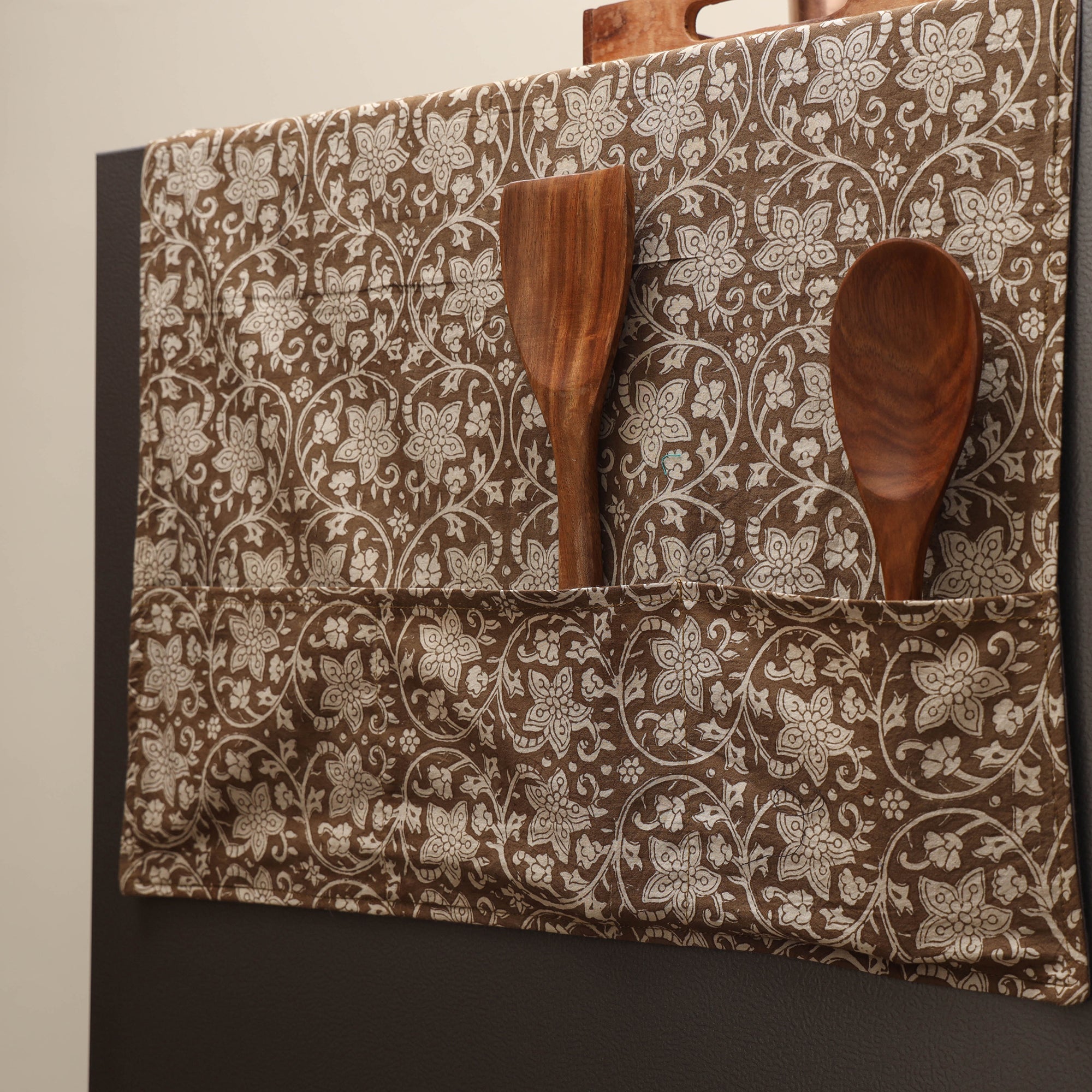 | Material | Brown fridge top cover is made from artisanal indian cotton fabrics. It helps protect your fridge from dust, stains, and everyday marks. The six stitched pockets provide convenient storage for small kitchen tools or other daily-use items. |