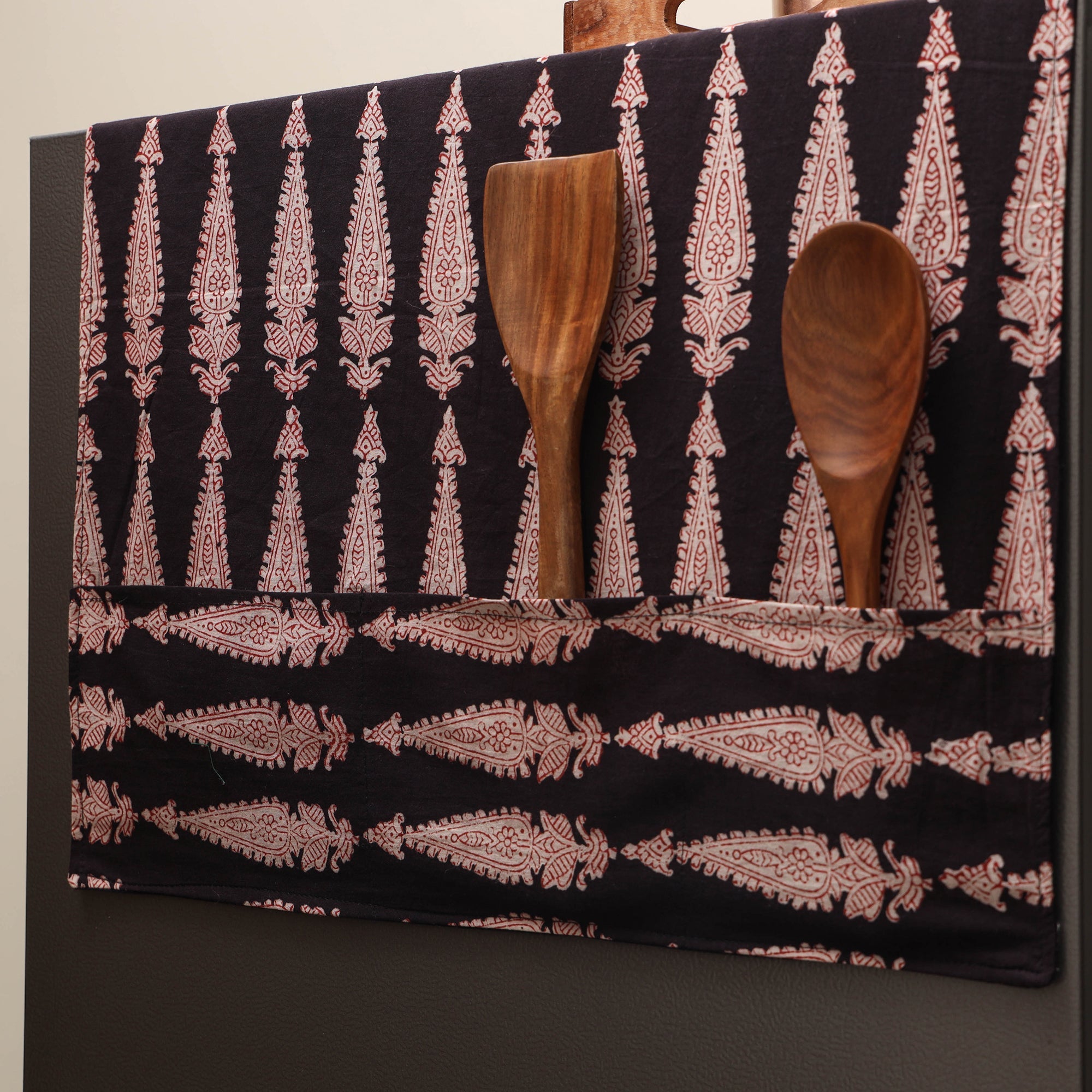 | Material | Black fridge top cover is made from artisanal indian cotton fabrics. It helps protect your fridge from dust, stains, and everyday marks. The six stitched pockets provide convenient storage for small kitchen tools or other daily-use items. |