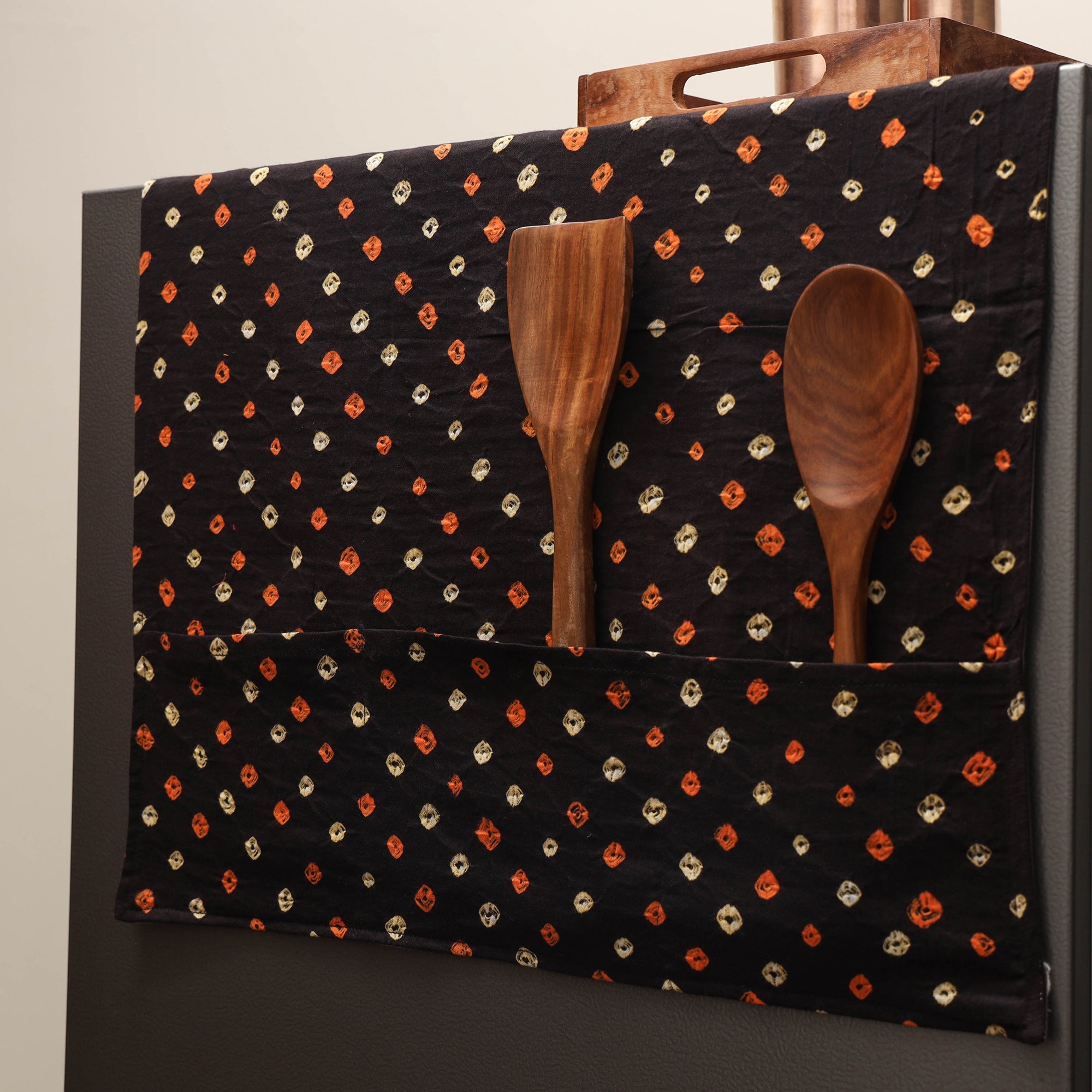 Fridge top cover is made from artisanal indian cotton fabrics. It helps protect your fridge from dust, stains, and everyday marks. The six stitched pockets provide convenient storage for small kitchen tools or other daily-use items.