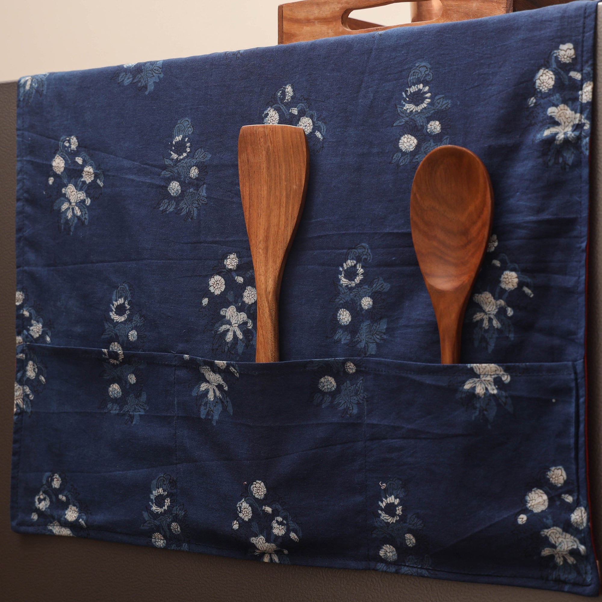 Handmade fridge top cover is made from artisanal indian cotton fabrics. It helps protect your fridge from dust, stains, and everyday marks. The six stitched pockets provide convenient storage for small kitchen tools or other daily-use items.