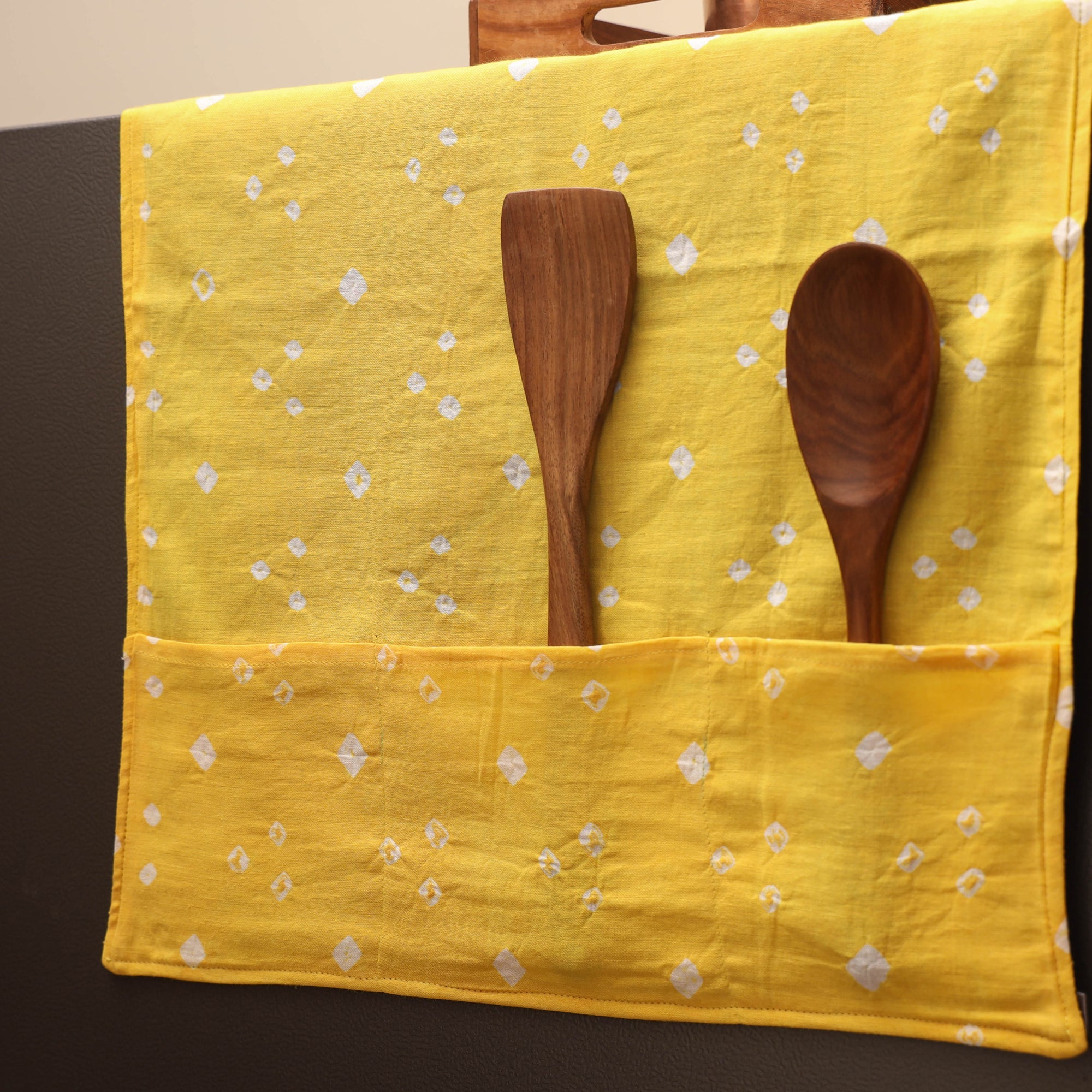 Handmade fridge top cover is made from artisanal indian cotton fabrics. It helps protect your fridge from dust, stains and everyday marks. The six stitched pockets provide convenient storage for small kitchen tools or other daily-use items.