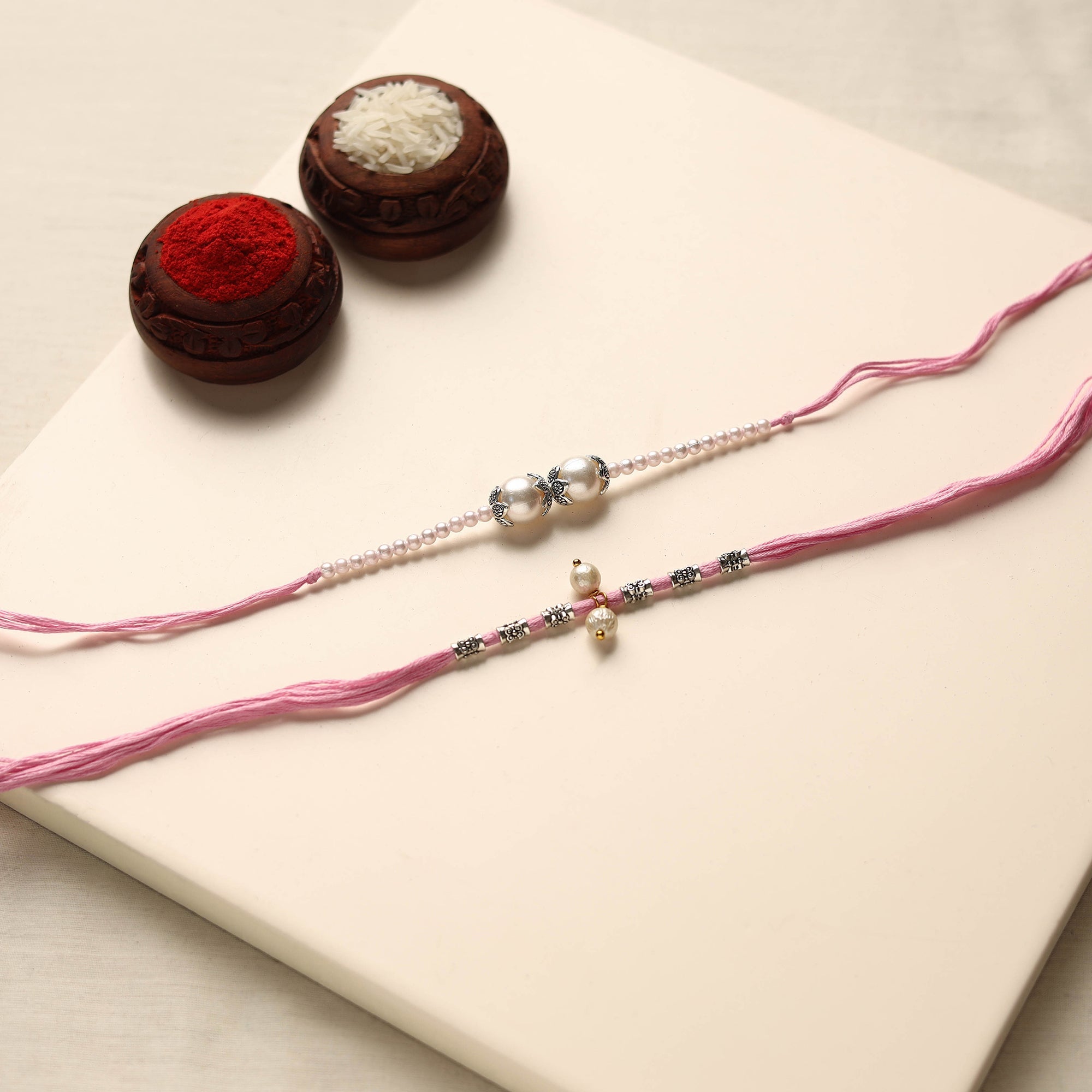 Make this raksha bandhan memorable with a handmade rakhi & lumba set, crafted using German silver & pearl. Each piece reflects the love and tradition shared between siblings. Made by iTokri’s artisans, this set is a thoughtful choice for your brother and bhabhi. It comes packed in a beautiful potli, making it ready for gifting too.