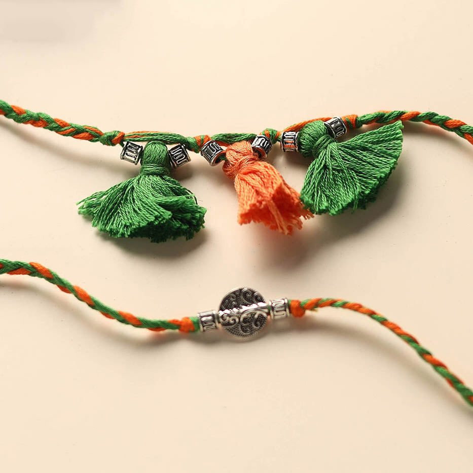 Celebrate the bond of siblings love with our handmade german silver rakhi & lumba set. Crafted by skilled artisans, this rakhi is more than just a thread, it’s a heartfelt symbol of affection and tradition. Perfect for making your Raksha Bandhan celebration truly special. It comes beautifully packed in a potli.