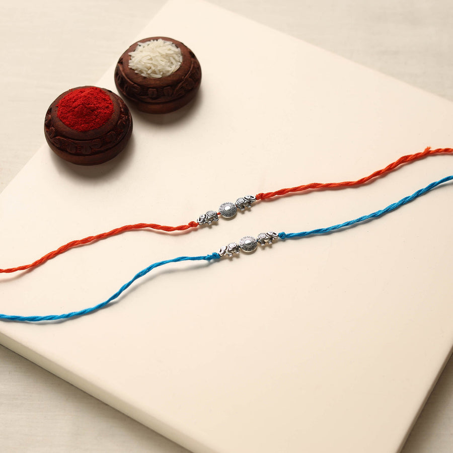 Make this raksha bandhan memorable with a set of 2 handmade rakhis, crafted using german silver. Each rakhi reflects the love and tradition shared between siblings. Made by iTokri’s artisans, this set is a