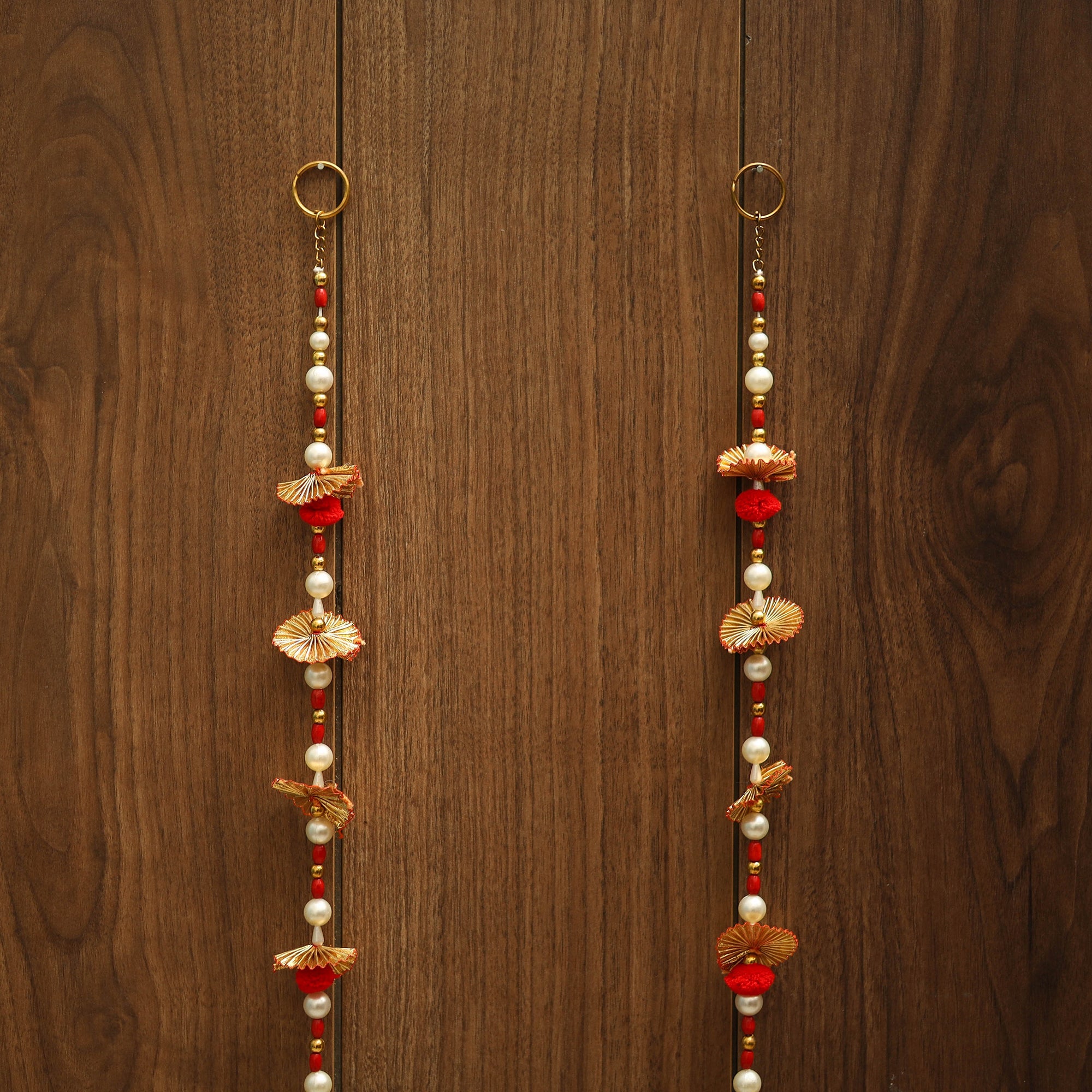 | Material | This gota and bead work hanging blends traditional detailing with vibrant charm. Designed with layered decorative elements, it brightens up doorways for diwali, weddings, or housewarmings. More than just décor, it creates a warm, welcoming vibe while adding a touch of cultural elegance. Perfect for everyday positivity as well as special celebrations. |