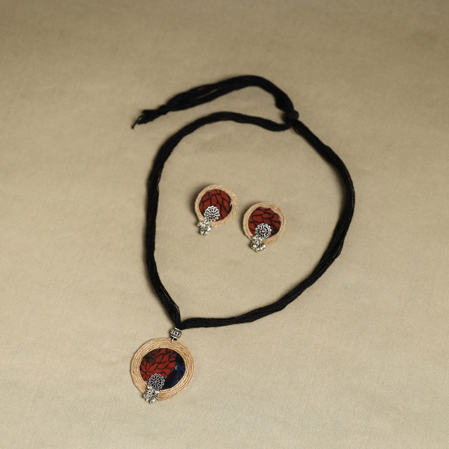 Add a touch of soulful charm to your outfit with this GS Jute black fabart necklace set. The handcrafted pendant, made from jute and fabric, is accented with german silver to create a charming fusion of folk and modern. Perfect for casual outings or festive gatherings.