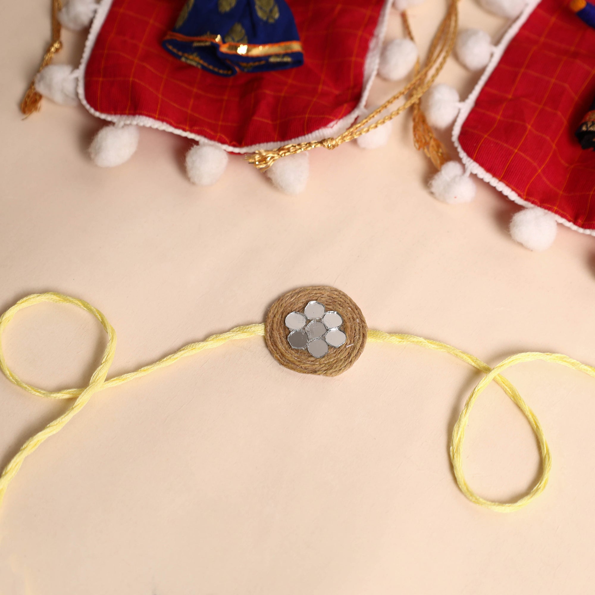 Handmade GS & Mirror Work Jute Rakhi (Set of 2) 16