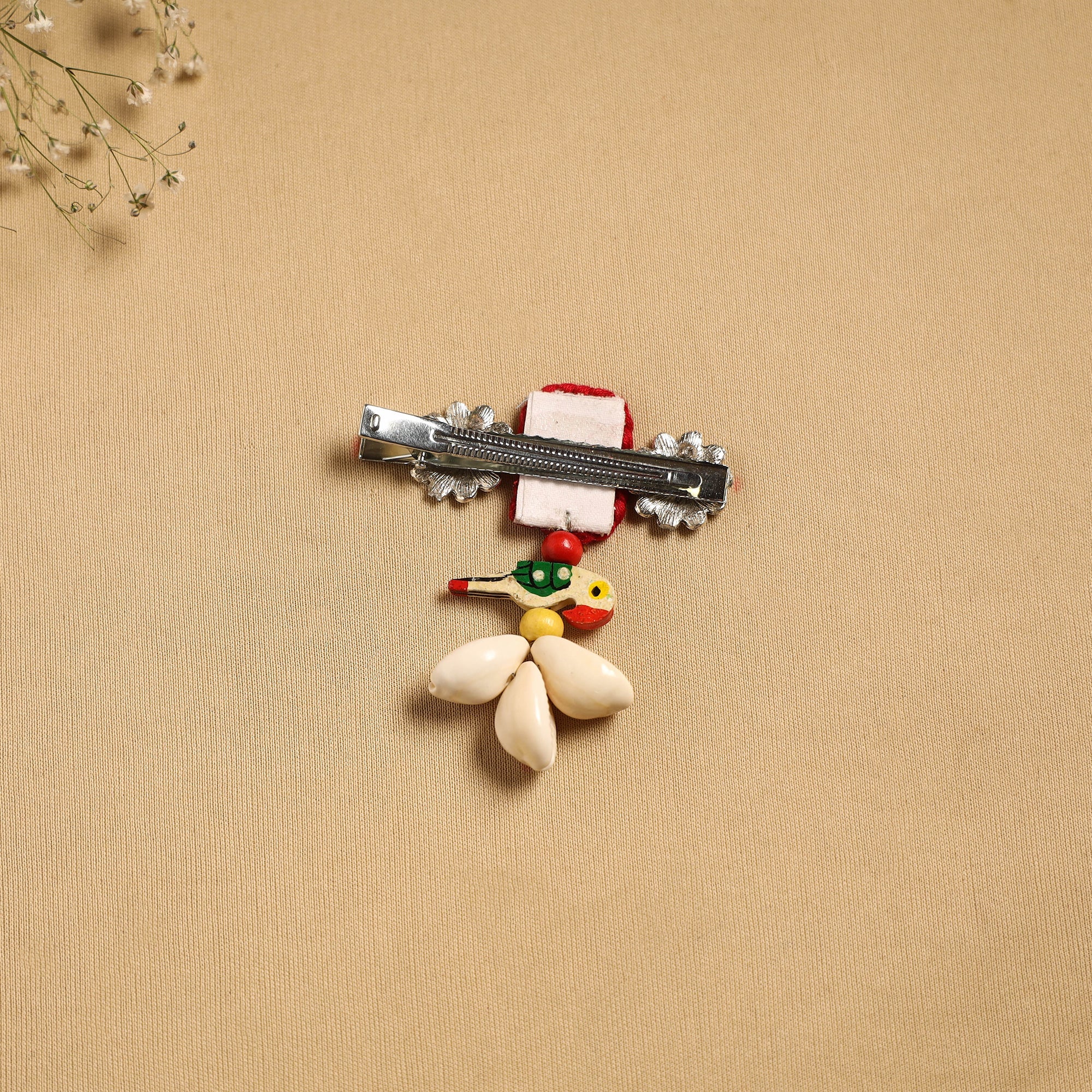 Handmade hair clip adds a graceful touch to your hairstyle. Features intricate artistic details that may include german silver, thread, shells bead work or other decorative elements, reflecting the unique creativity of the maker.